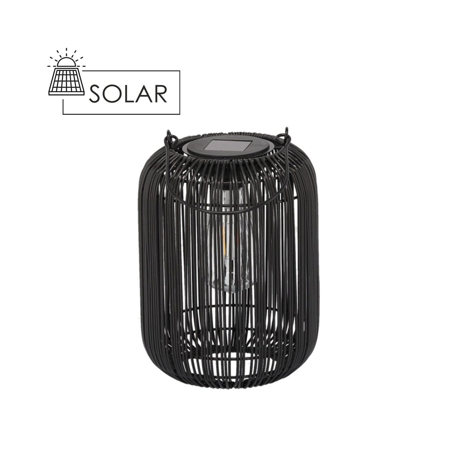 Практичний та ефектний – чорний сонячний ліхтар заввишки 24 см є ідеальним доповненням до вашого зовнішнього простору. Він поєднує просту форму із позачасовою елегантністю та функціональністю, забезпечуючи атмосферне світло вечорами.