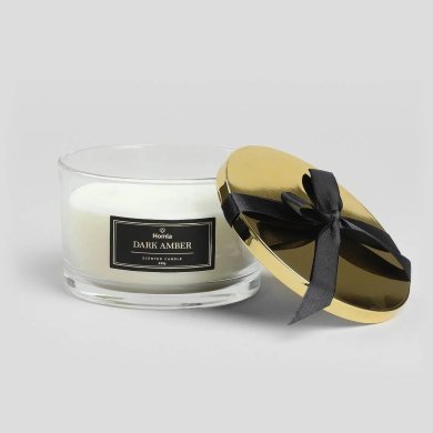 Ароматична свічка MOON ідеально підходить для шанувальників глибоких, чуттєвих ароматів. Аромат Dark Amber поєднує в собі ноти амбри, мускусу та цінних порід дерева, створюючи елегантний та теплий запах. Стильна скляна упаковка надає свічці сучасного вигляду і робить її чудовим доповненням до будь-якого інтер'єру – від вітальні до спальні.