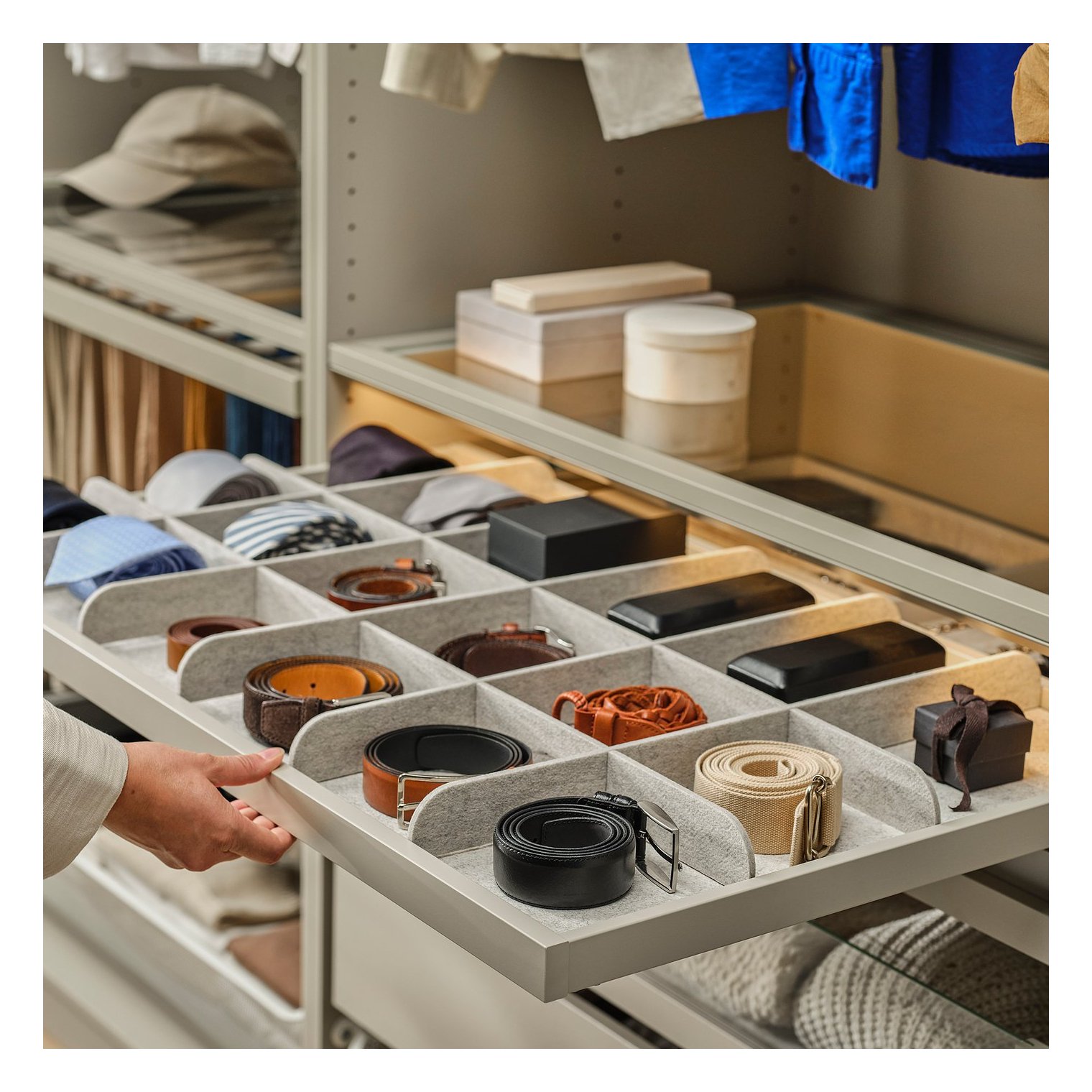 Відділення полегшують організацію та пошук дрібних предметів, таких як шарфи, ремені чи краватки.