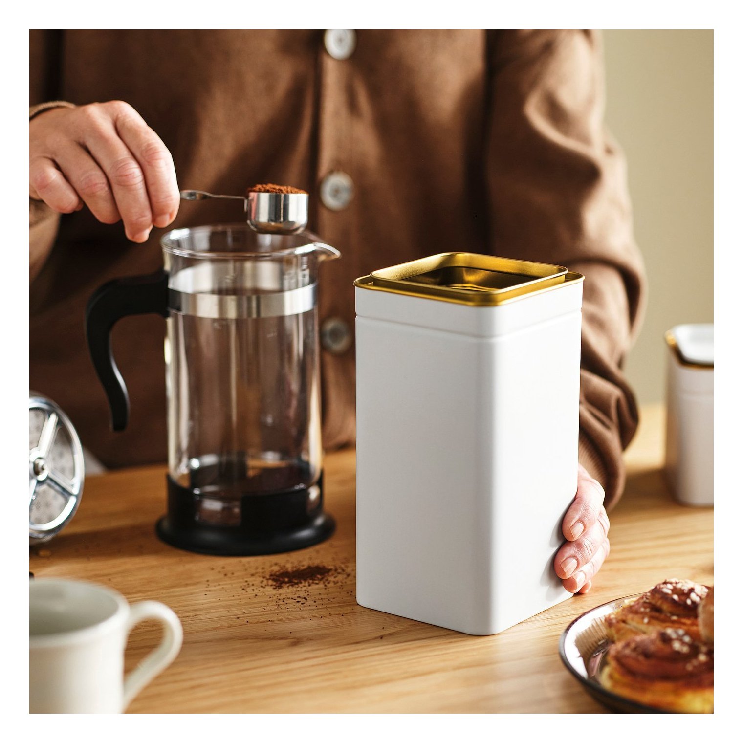 Найбільша банка (1,8 л) ідеально підходить для кави, чаю та спецій. У неї міститься приблизно 650 г меленої кави або 500 г розсипного чаю.