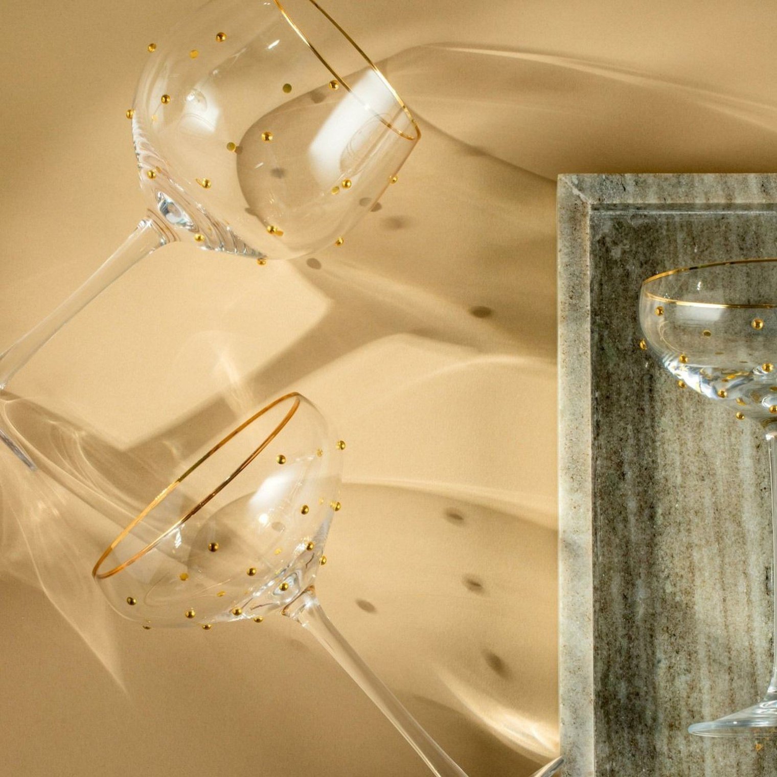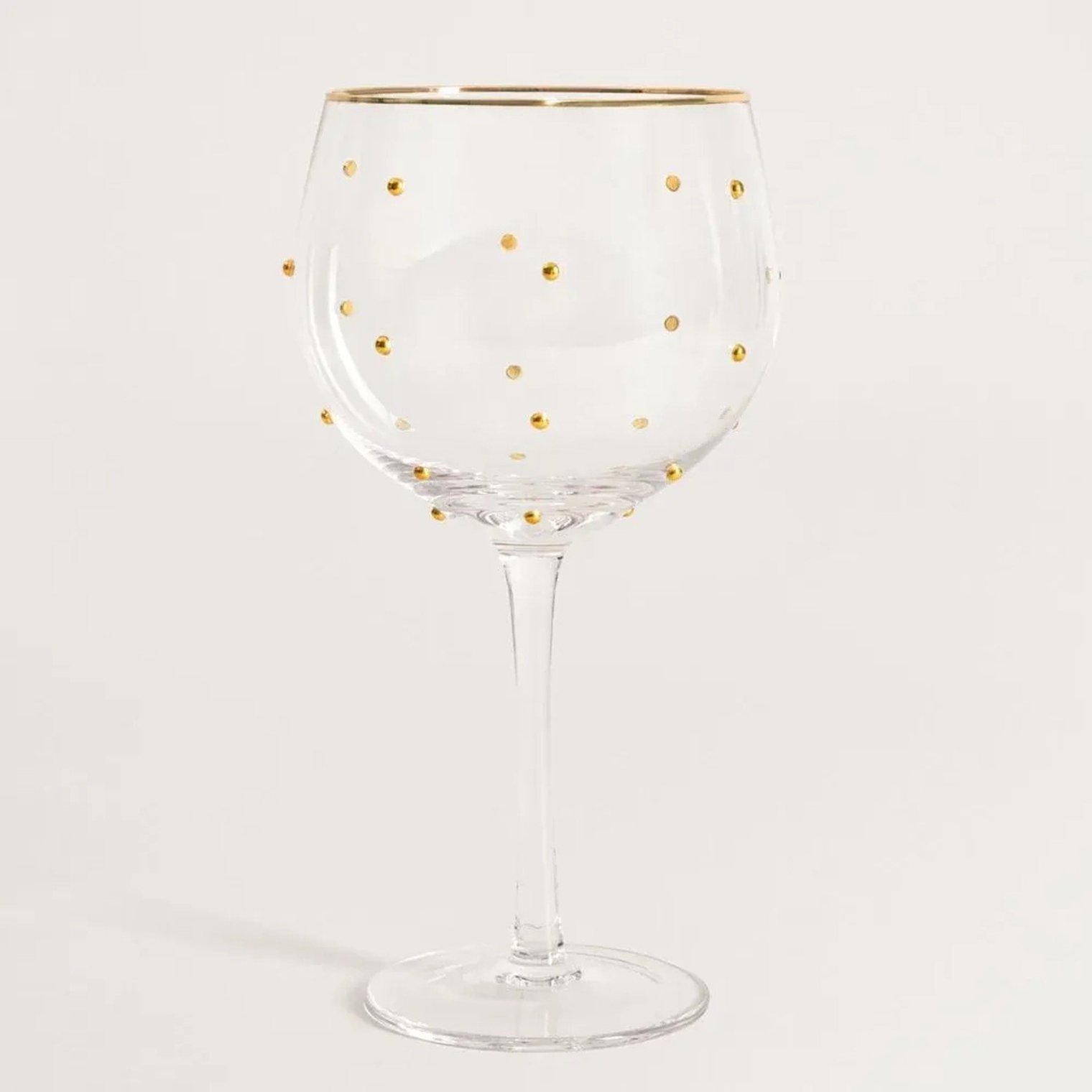 Бажаєте додати елегантності та стилю вашим коктейлям? Склянка PEDRA 0,52 л – відмінний варіант. Прозора склянка прикрашена витонченими золотими точками, а зручна ніжка забезпечує зручне захоплення при подачі напоїв. Він чудово виглядає як на вечірках, так і у повсякденному житті з друзями.