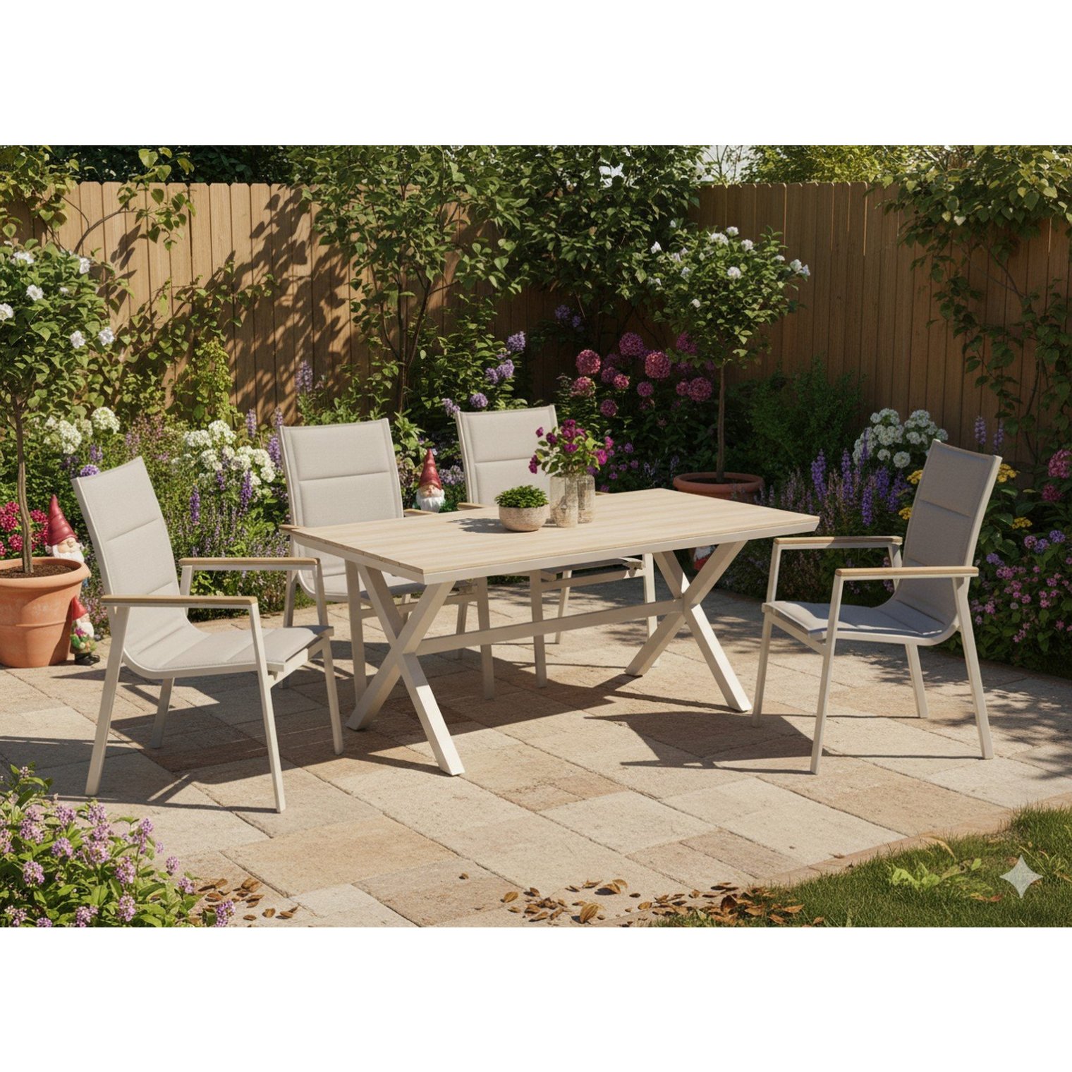 Сучасне та зручне садове крісло, виготовлене з легкого але міцного алюмінієвого каркасу, обробленого сіткою Textilene 2x1 з м'якою оббивкою. Ідеально підходить для тераси, саду чи балкону. Підлокітники з полівінілхлориду надають природного вигляду та забезпечують стійкість до погодних умов.