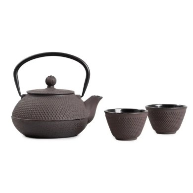 Чавун об'ємом 0,8 л ефективно зберігає температуру заварювання, дозволяючи довго насолоджуватися повним ароматом. Дві чашки, кожна об'ємом 0,12 л доповнюють набір, забезпечуючи комфортну подачу чаю. Чавунна ручка забезпечує надійне захоплення.