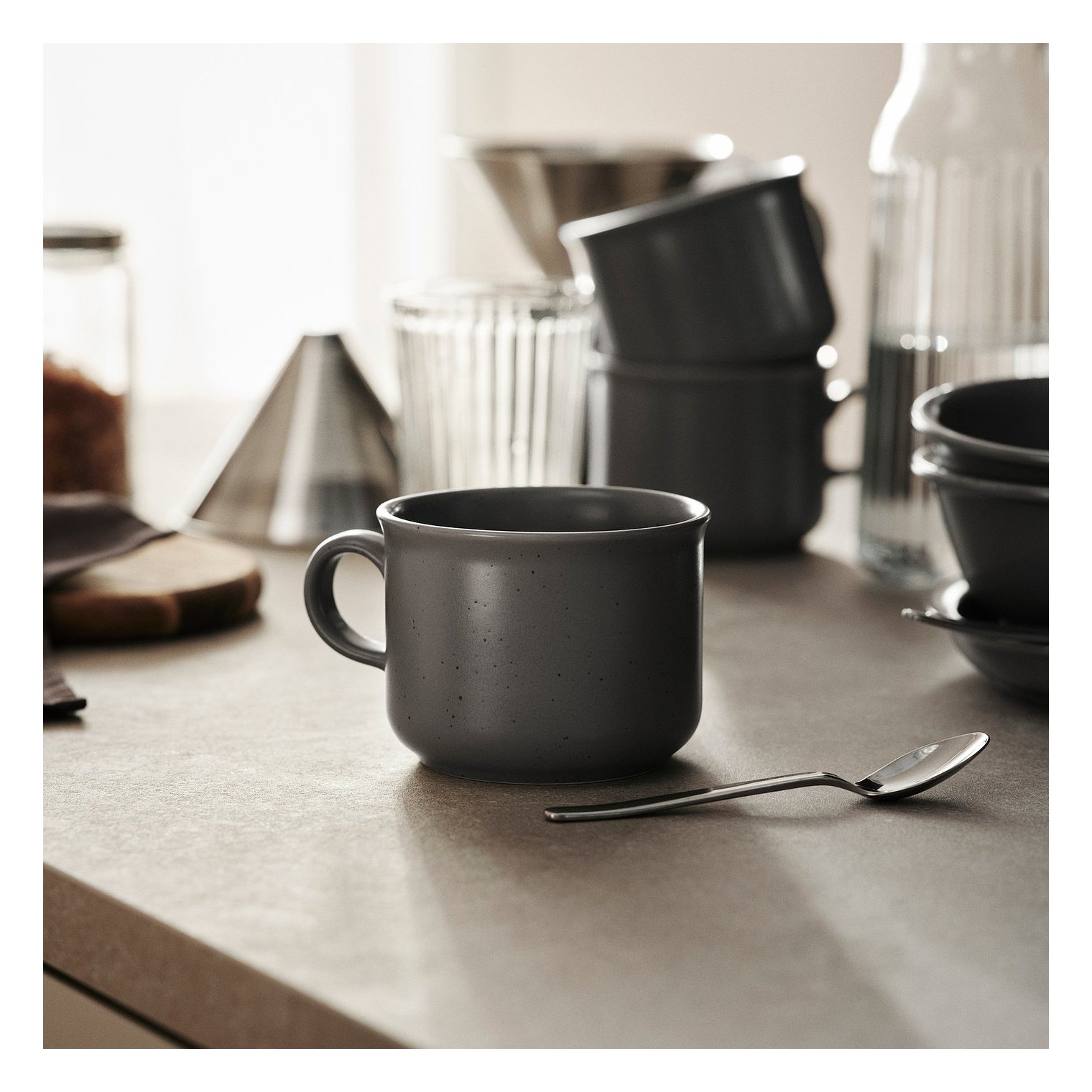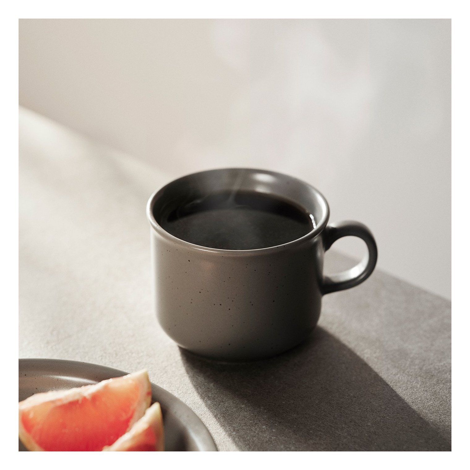 Керамічна плитка у сільському стилі, сірого напівматового кольору з нерівними вкрапленнями, що надають їй динамічного та автентичного характеру.