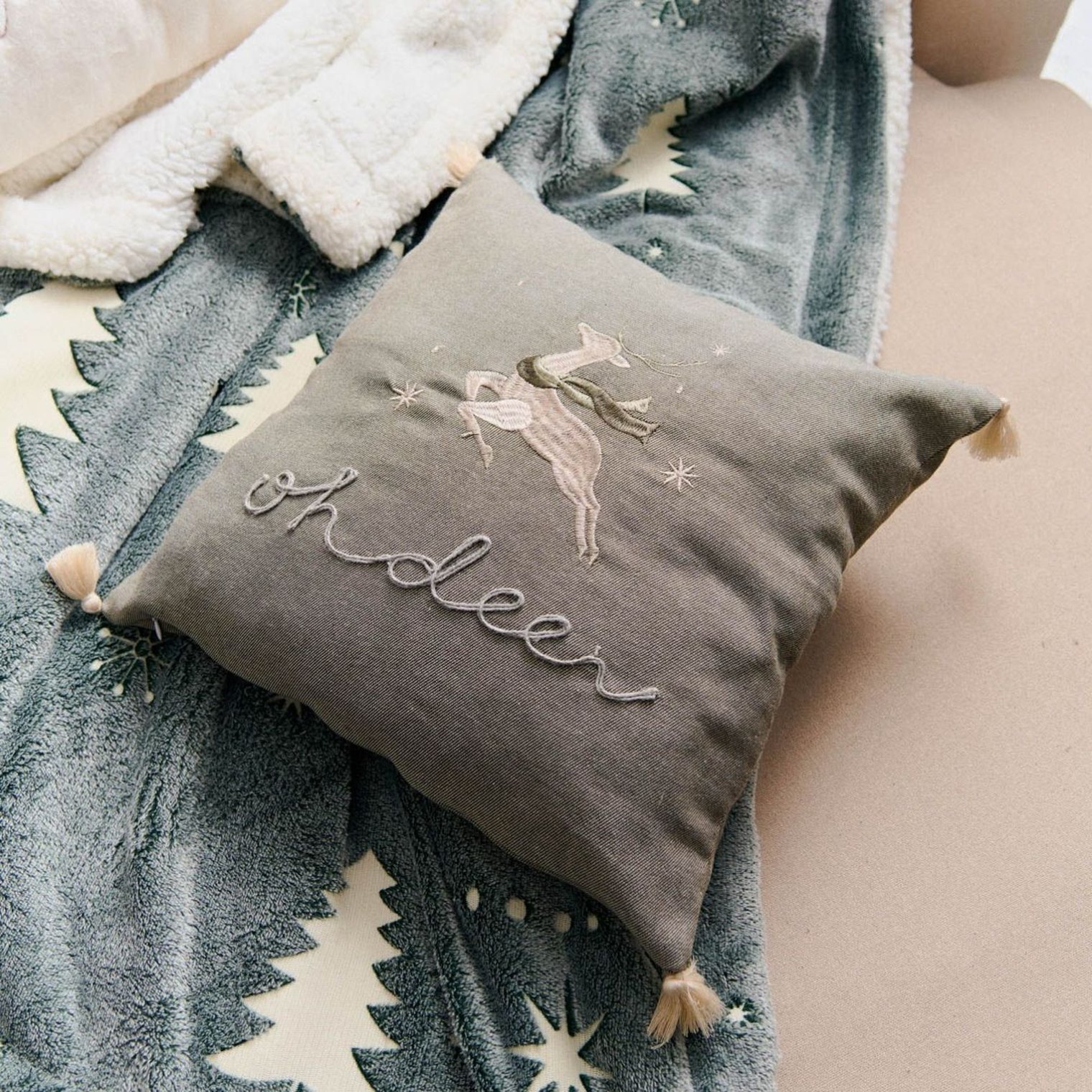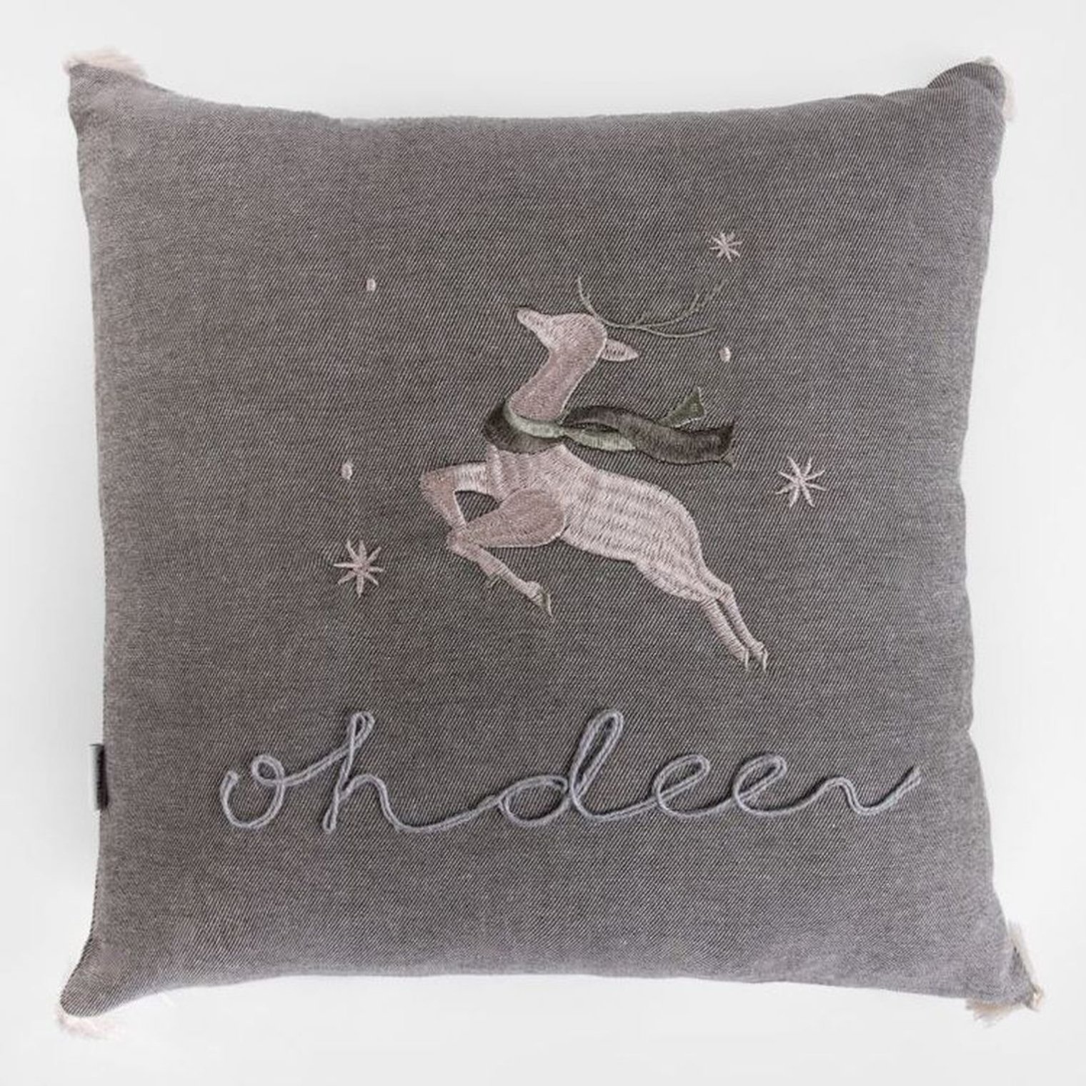- Чарівний чохол для подушки з вишитым оленем та написом «Oh deer»
