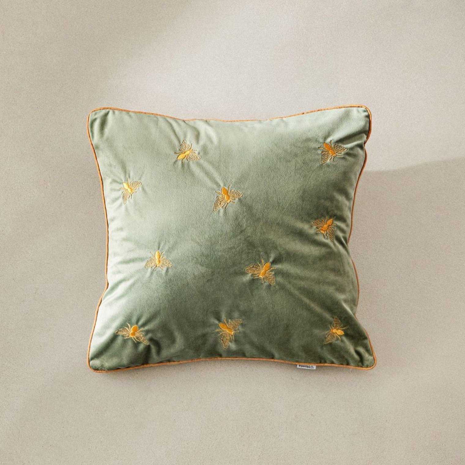 Якщо ви шукаєте аксесуар, який додасть затишку та вишуканого декоративного штриха у ваш інтер'єр, наволочка CAMILLA – ідеальний вибір. Фісташковий відтінок оксамиту в поєднанні з ніжною вишивкою у вигляді бджіл створює гармонійне та елегантне ціле. Це стильна деталь, яка додає тепла та природності вашому інтер'єру.