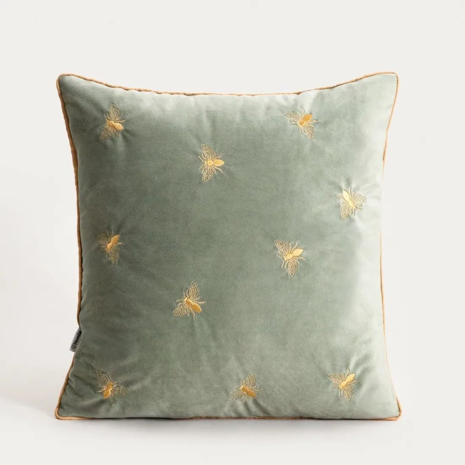 Наволочка з оксамиту з вишитими бджолами, 45 x 45 см.