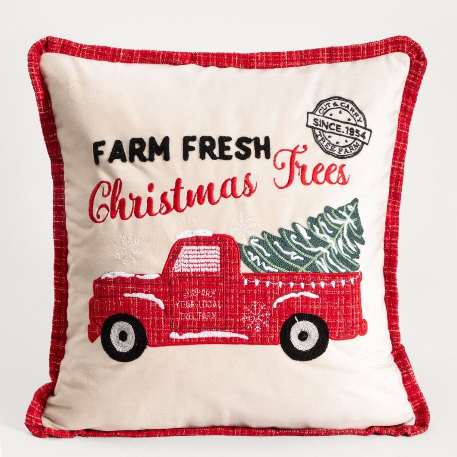 Прикрасьте свій будинок до свят, щоб ви поверталися туди з усмішкою на обличчі – наволочка з різдвяним візерунком «ФЕРМА» додасть тепла та елегантності будь-якому приміщенню. Червона вантажівка з ялинкою навіює спогади про прекрасні зимові подорожі. Вишиті деталі додають чарівності та створюють справжню різдвяну атмосферу.