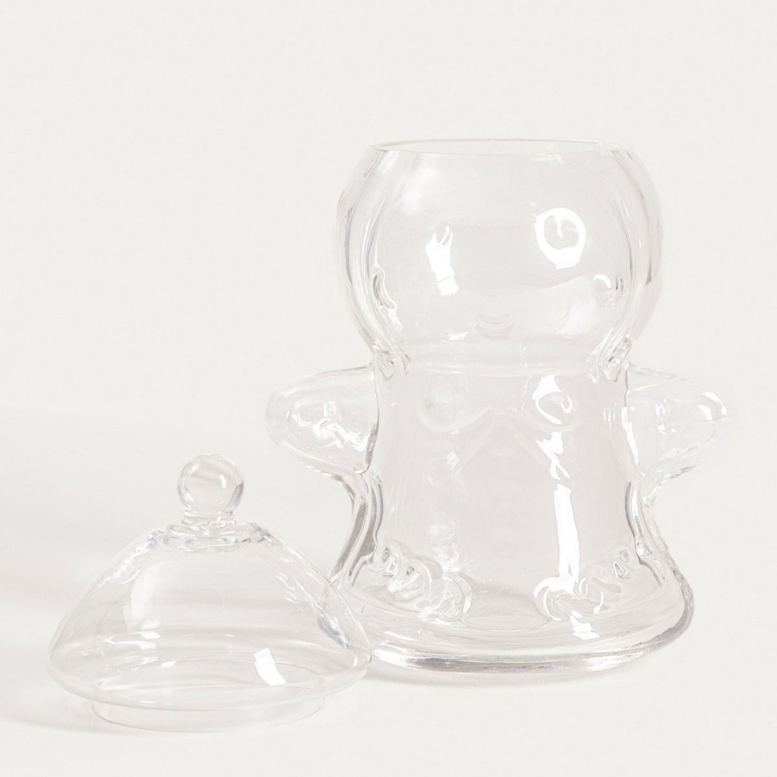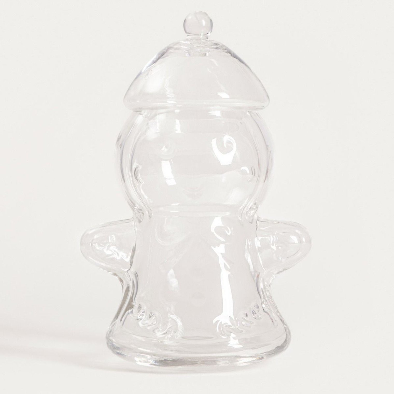 Скляна ємність у формі чоловічка з печива для різдвяних прикрас та солодощів.