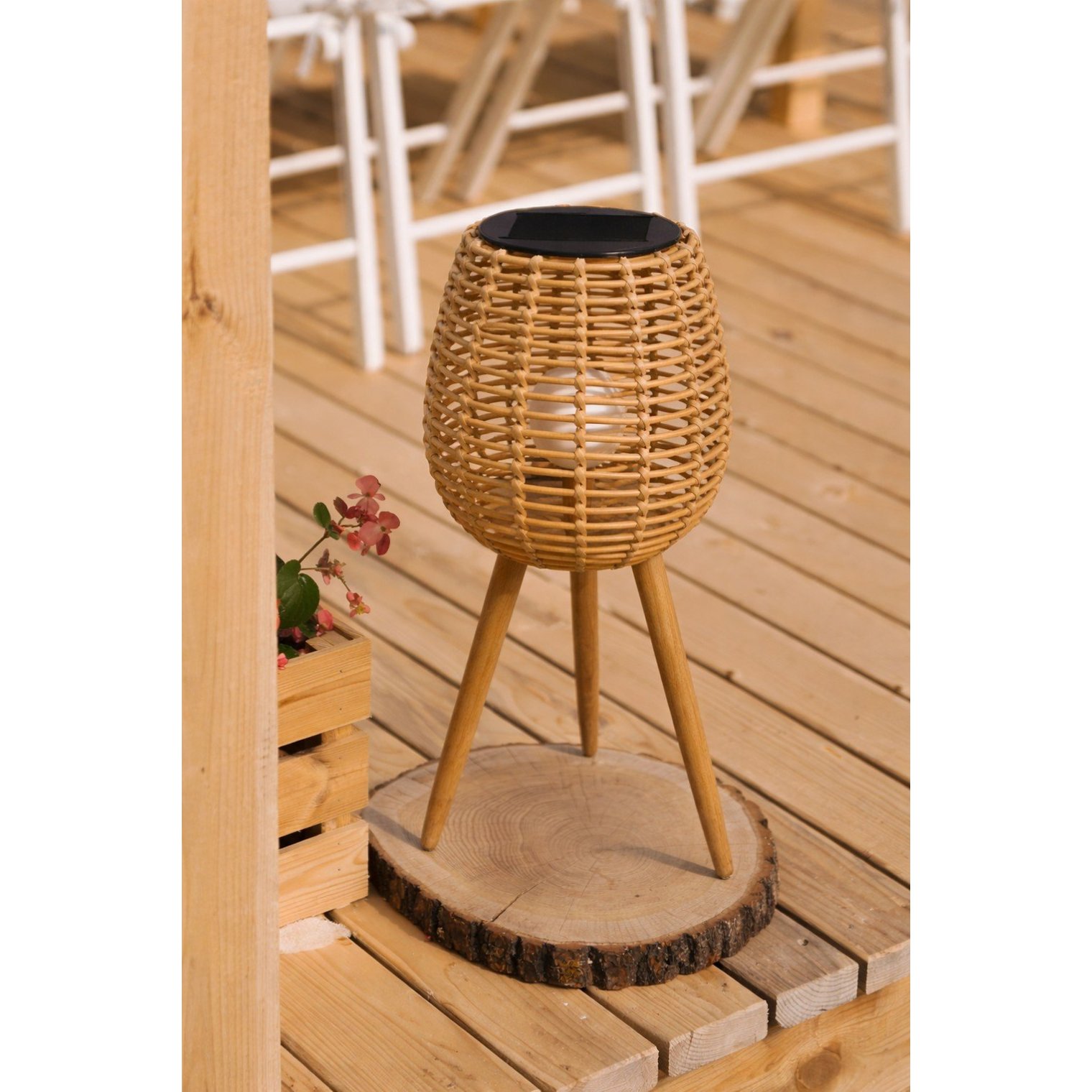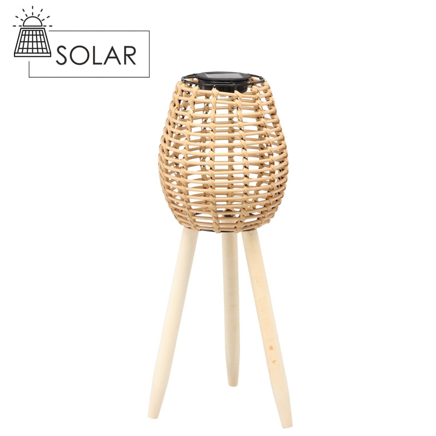 Натуральна елегантність, світло прямо від сонця та стильний дизайн в одному! Цей сонячний ліхтар на дерев'яних ніжках – унікальна декорація, яка додасть шарму будь-якому простору – як зовні, так і всередині.