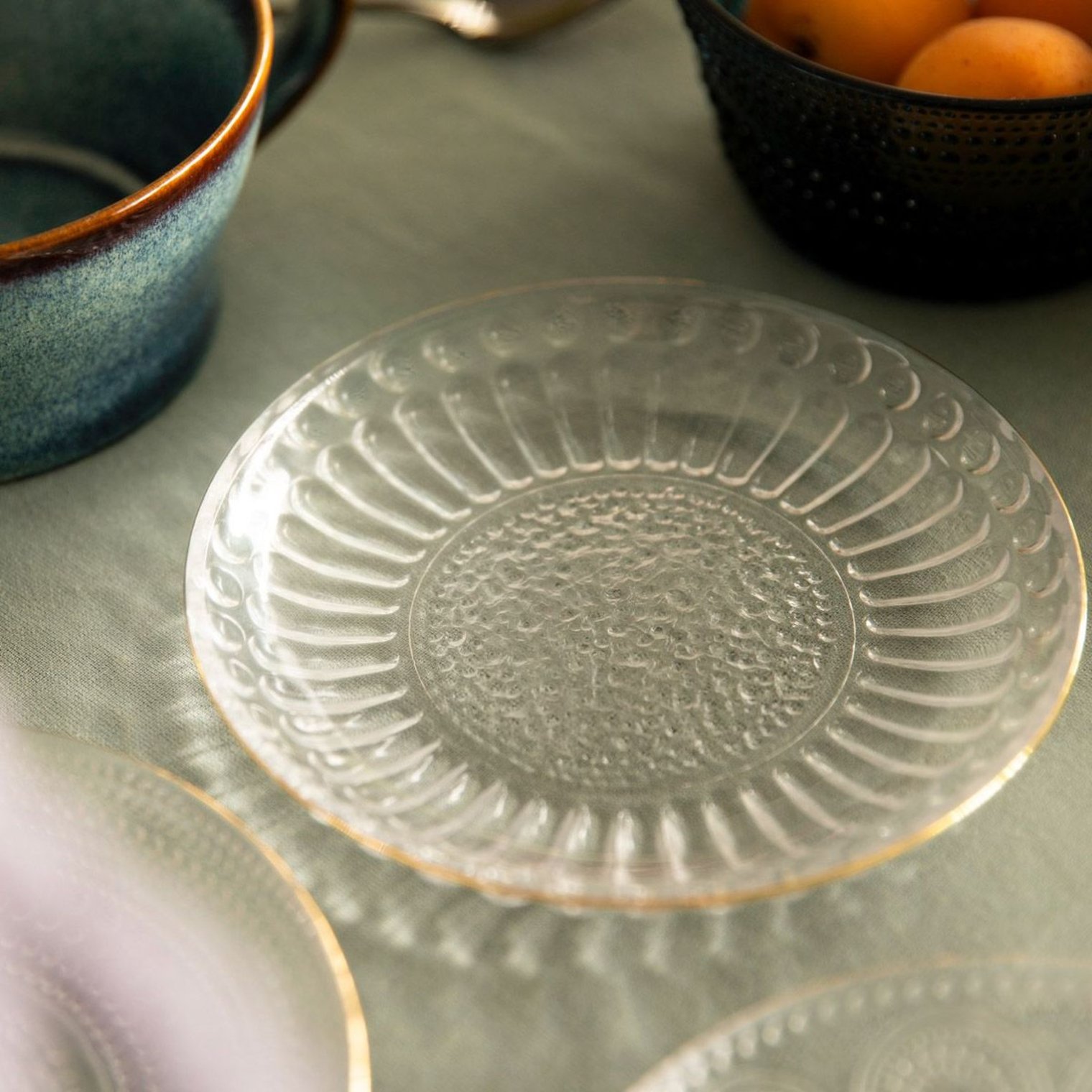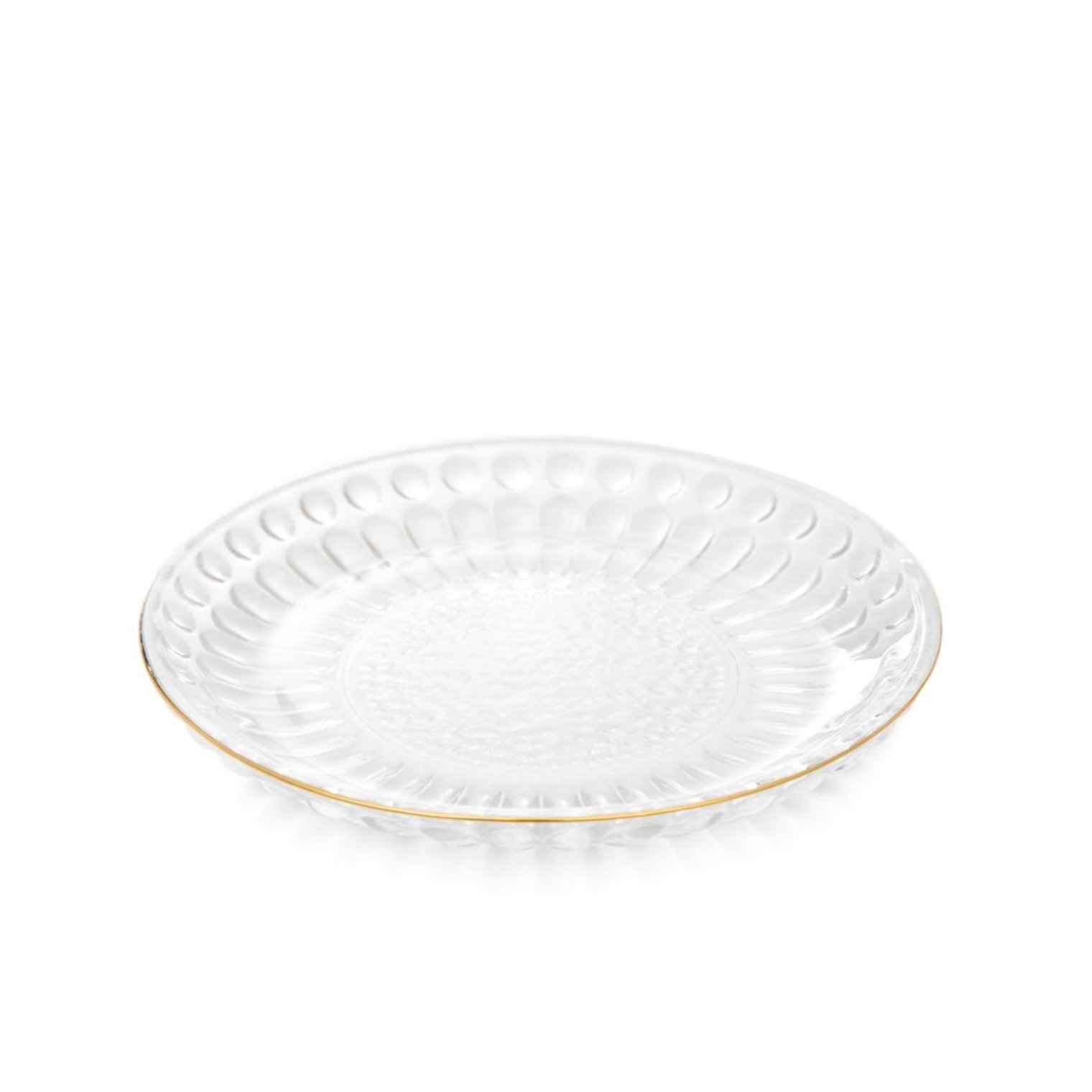 Десертна тарілка з унікальної колекції HOMLA BARREL - дизайн тарілки ідеально підходить для елегантного та святкового сервірування столу. Залежно від освітлення вона переливається красивими світловими відблисками, а завдяки золотому обідку ідеально вписується в стиль гламур.