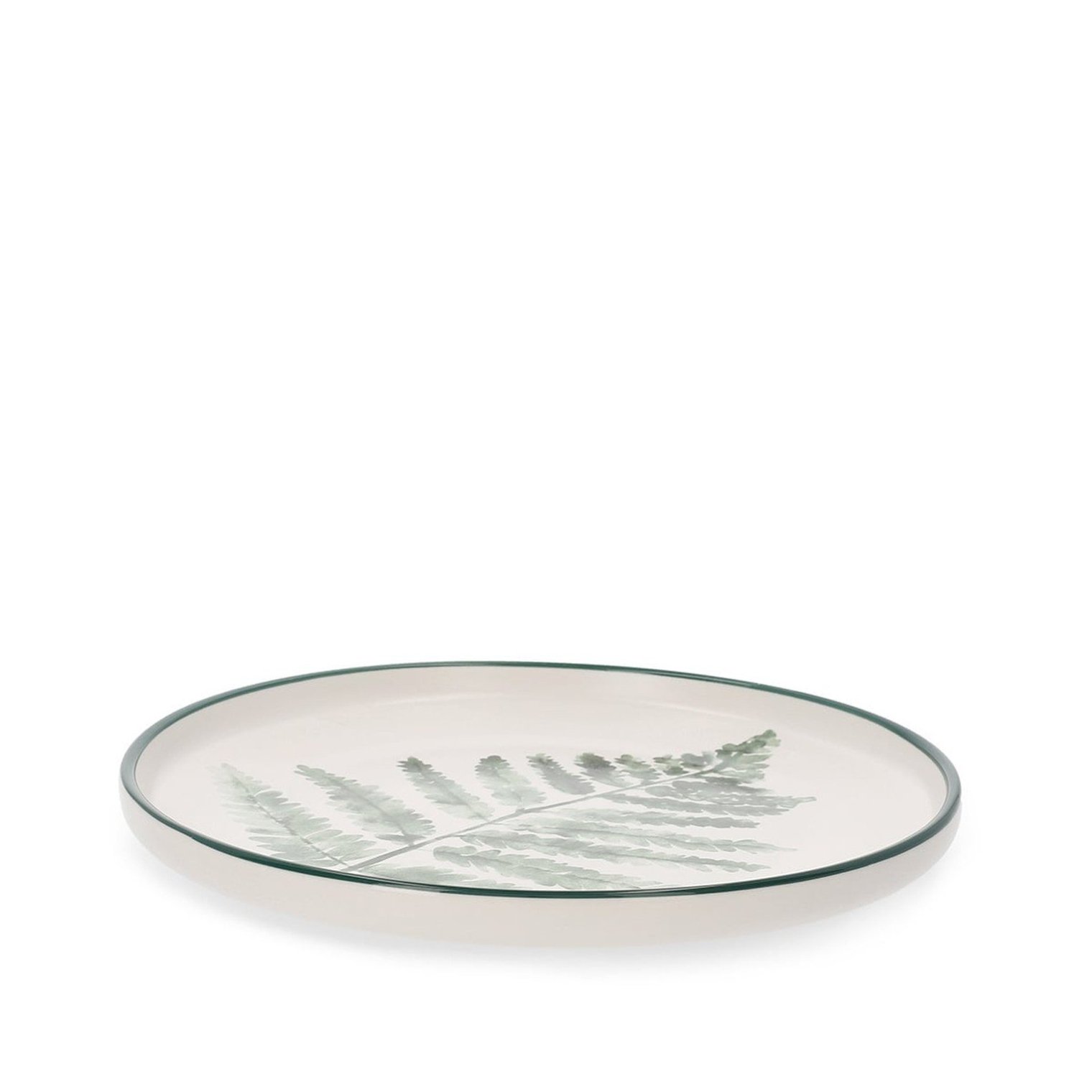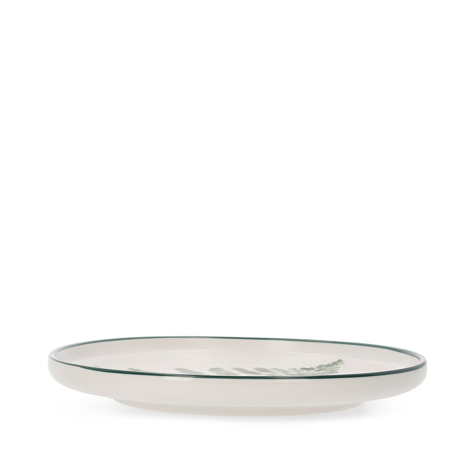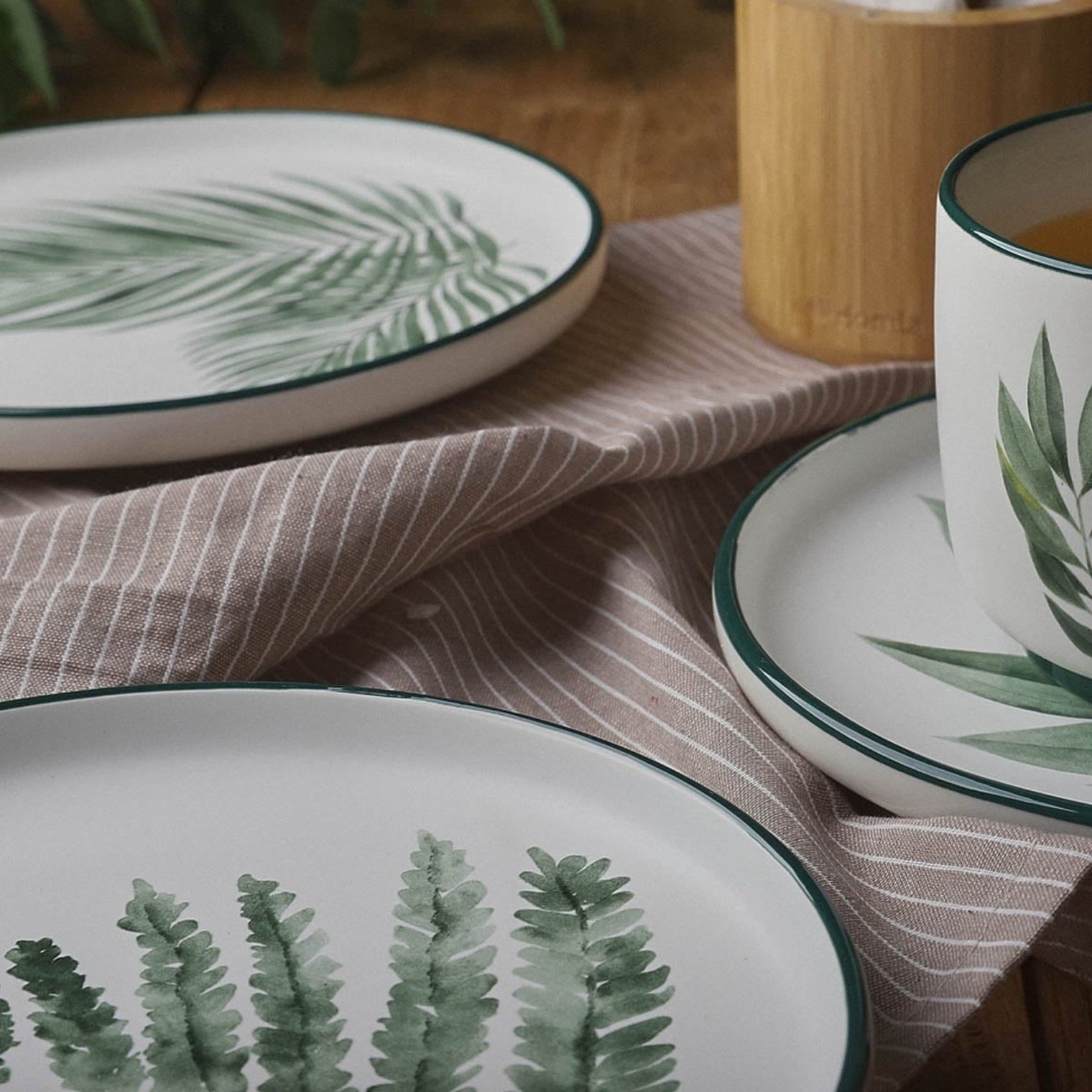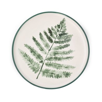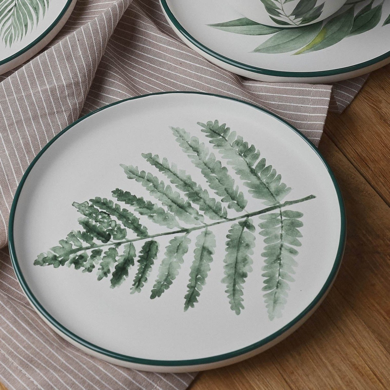 Ботанічна тарілка BLYDE діаметром 20 см доповнить різні композиції, насамперед завдяки своєму позачасовому білому кольору, який лежить в основі природної естетики. Лист каучукового дерева виглядає так, ніби намальований вручну аквареллю, відрізняючись витонченою чарівністю та спокійними квітами, обрамленими безліччю відтінків зеленого. Тарілка має мінімалістичну круглу форму, а її злегка підняті краї прикрашені яскравим пляшково-зеленим кольором, що обрамляє весь виріб.