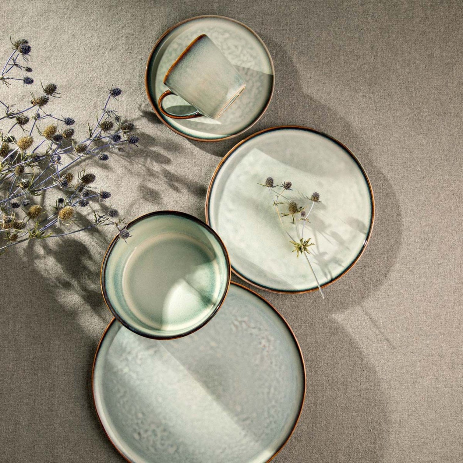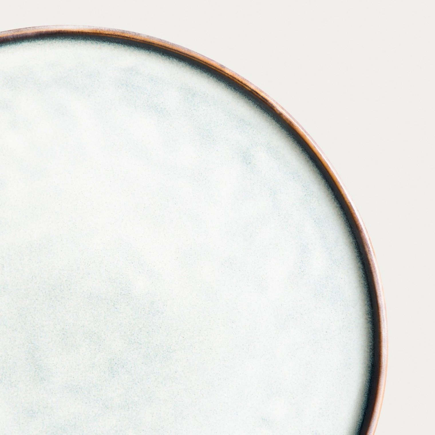 Десертна тарілка VELLORA прохолодного світло-блакитного відтінку стане елегантним доповненням до будь-якого столу. Тонка кольорова гама поверхні та контрастний обідок надають їй неповторного характеру. Завдяки ефектній реактивній глазурі кожна тарілка виглядає унікально і служить прекрасним фоном для закусок, що подаються.