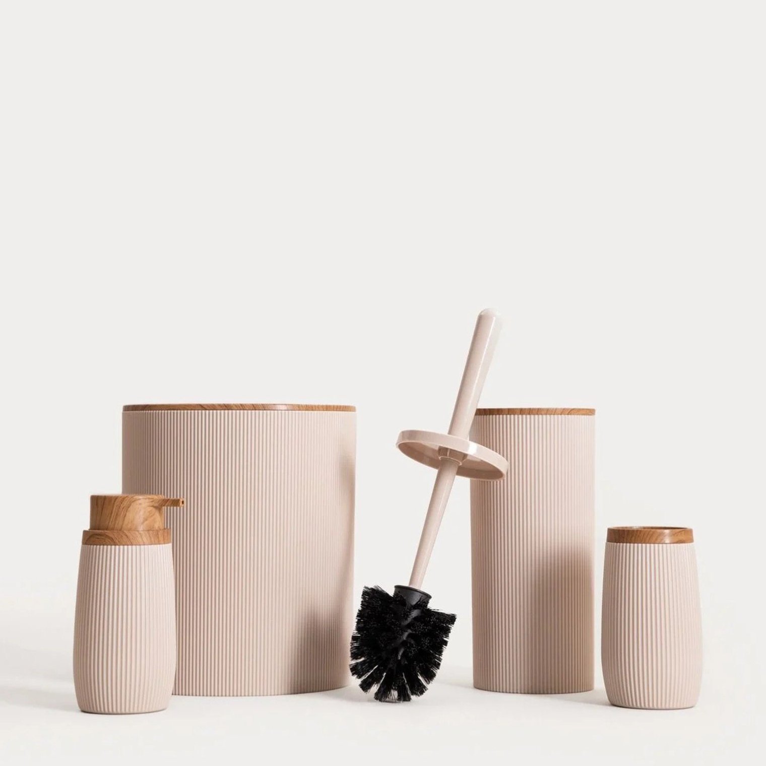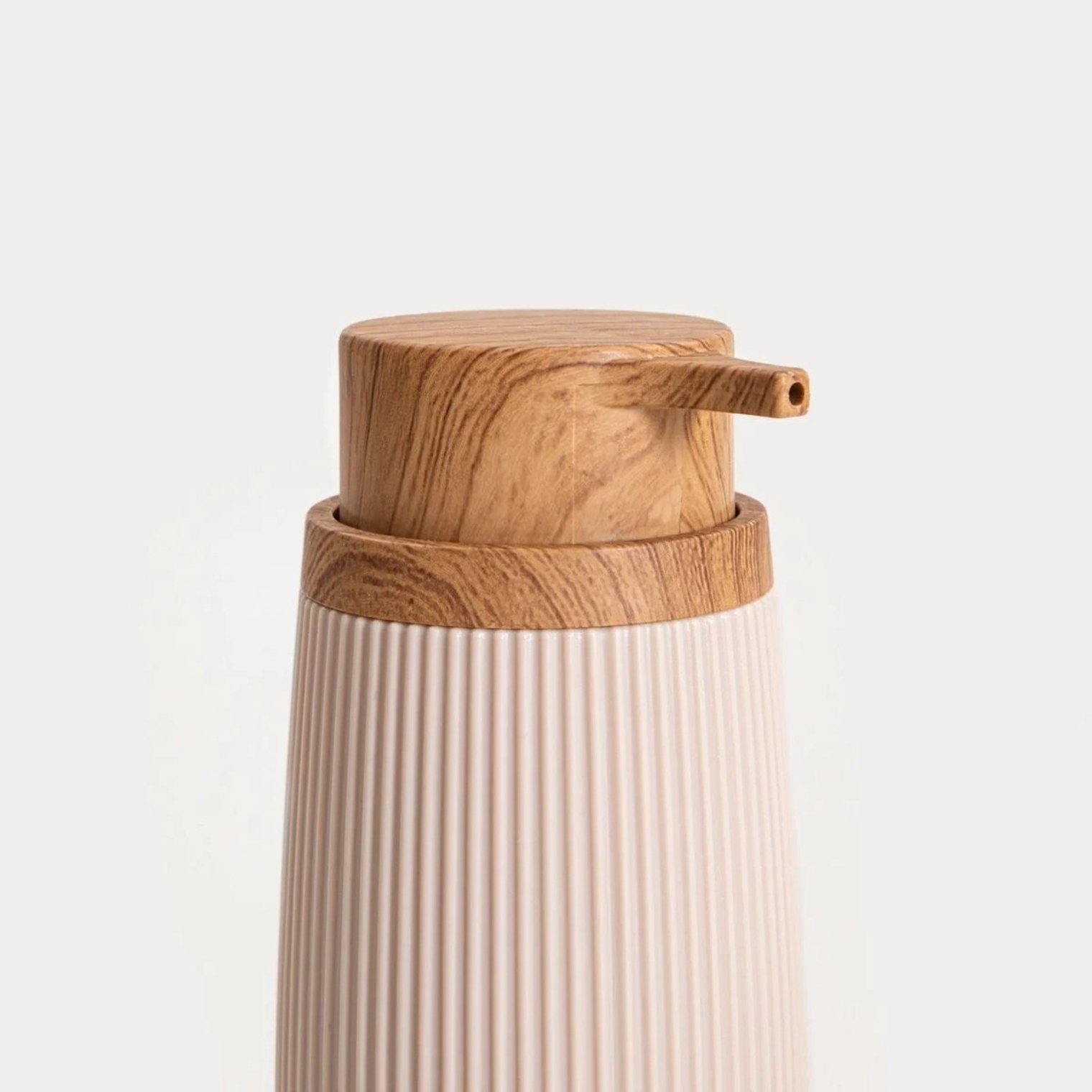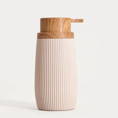 Дозатор DIALL – це стильний та функціональний аксесуар, який ідеально доповнить декор сучасної ванної чи кухні. Ніжний бежевий колір у поєднанні з вертикальними борозенками надає йому елегантного мінімалістичного характеру, а елемент з імітацією дерева додає тепла.