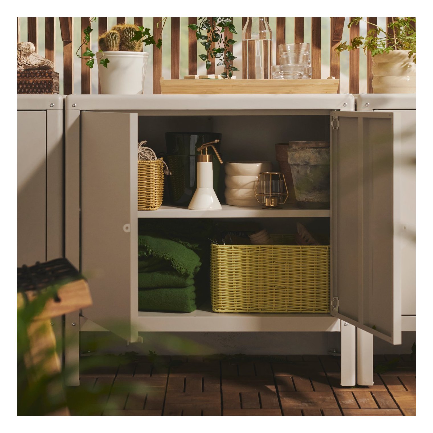 Технораттан, сплетений вручну, зовні схожий на натуральний ротанг, але довговічніший і підходить для використання на відкритому повітрі.