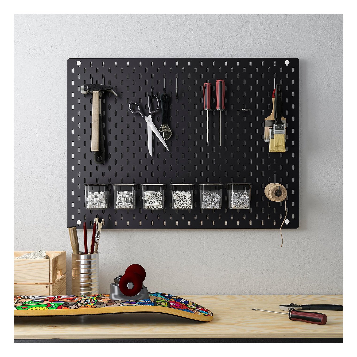 Завдяки дошці для інструментів СКОДІС та аксесуарам ви можете легко організувати та знайти те, що вам потрібно. Ідеально підходить для будь-якої кімнати у будинку.