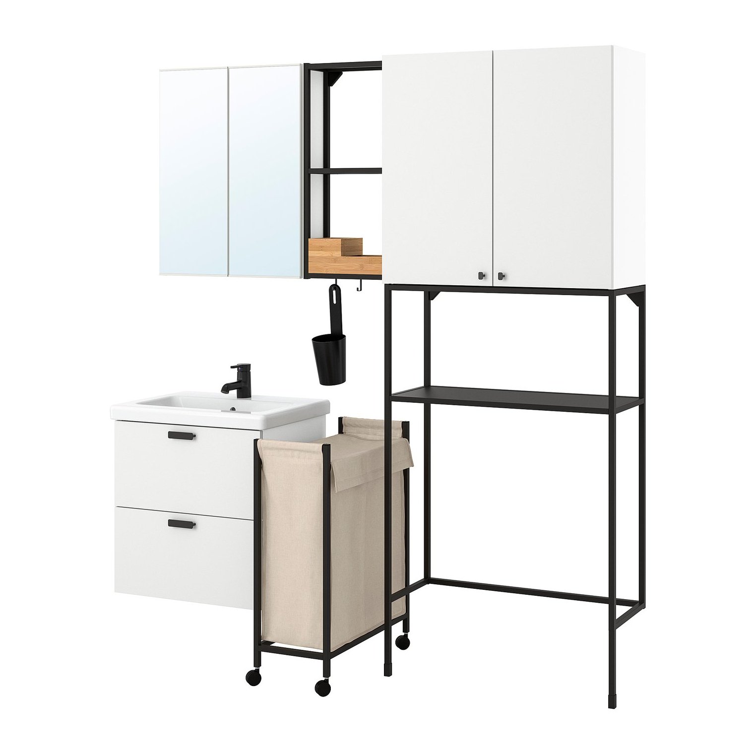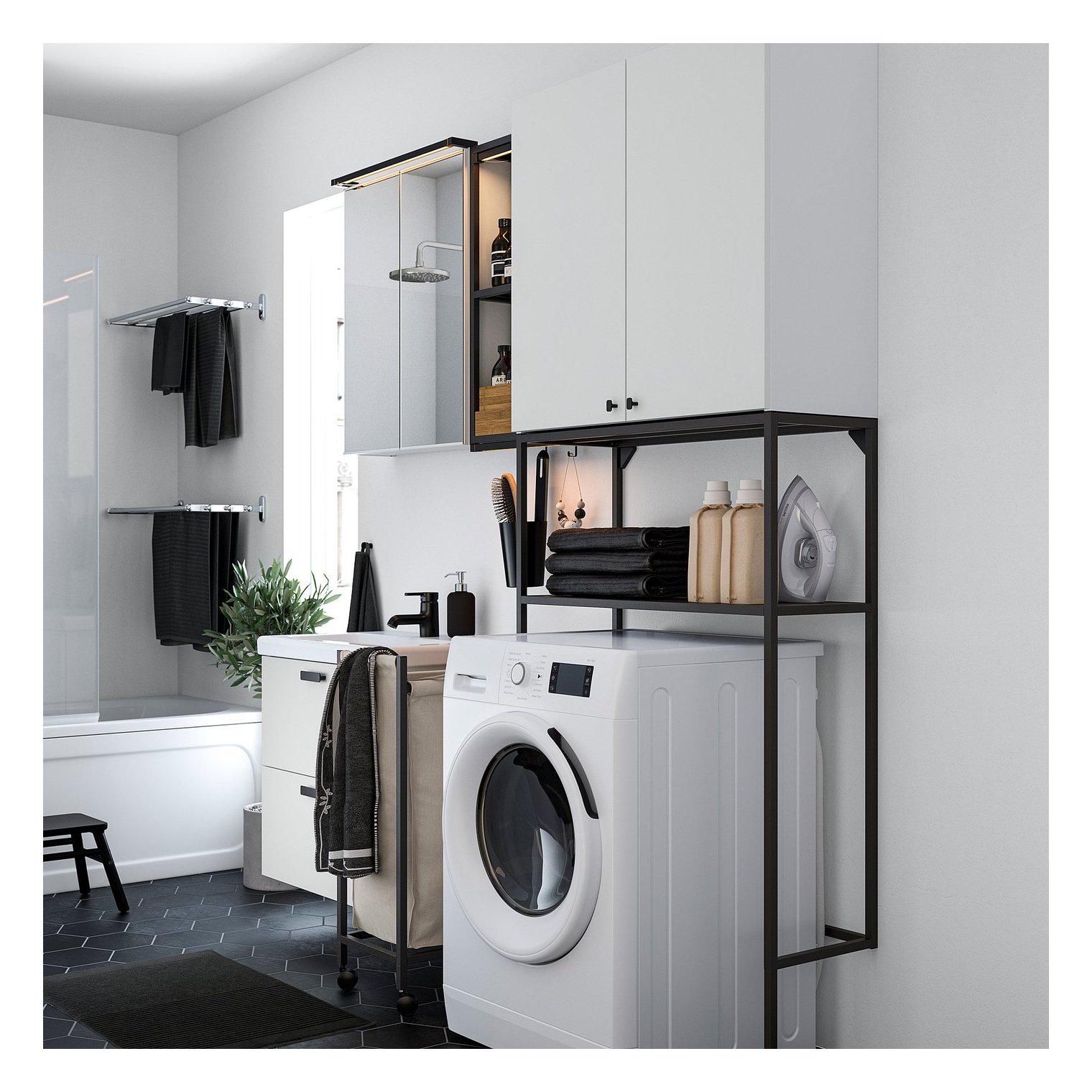 Прикріпіть гачки ENHET до рам, щоб повісити рушники, або створіть більше місця для зберігання за допомогою коробки SKATTÅN.