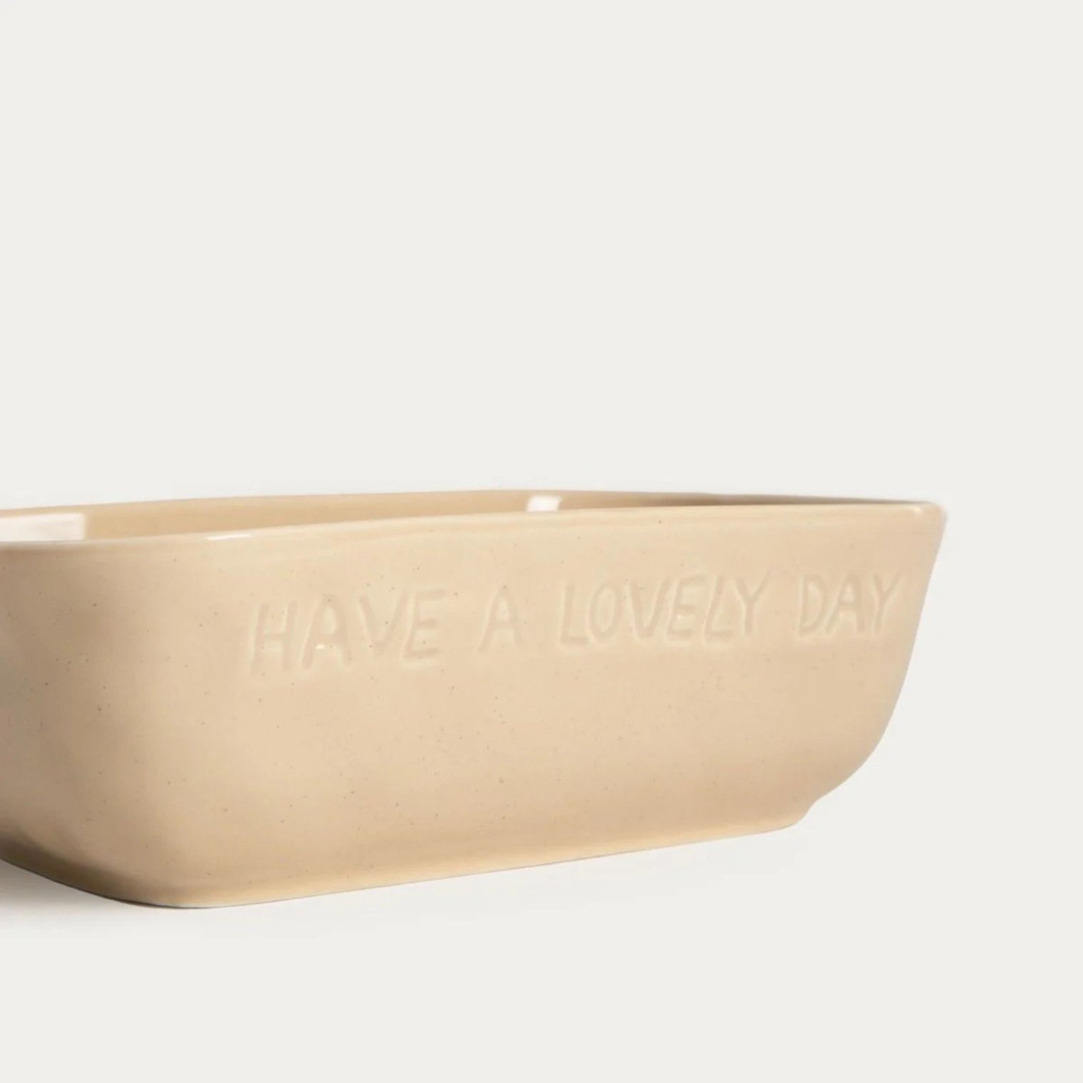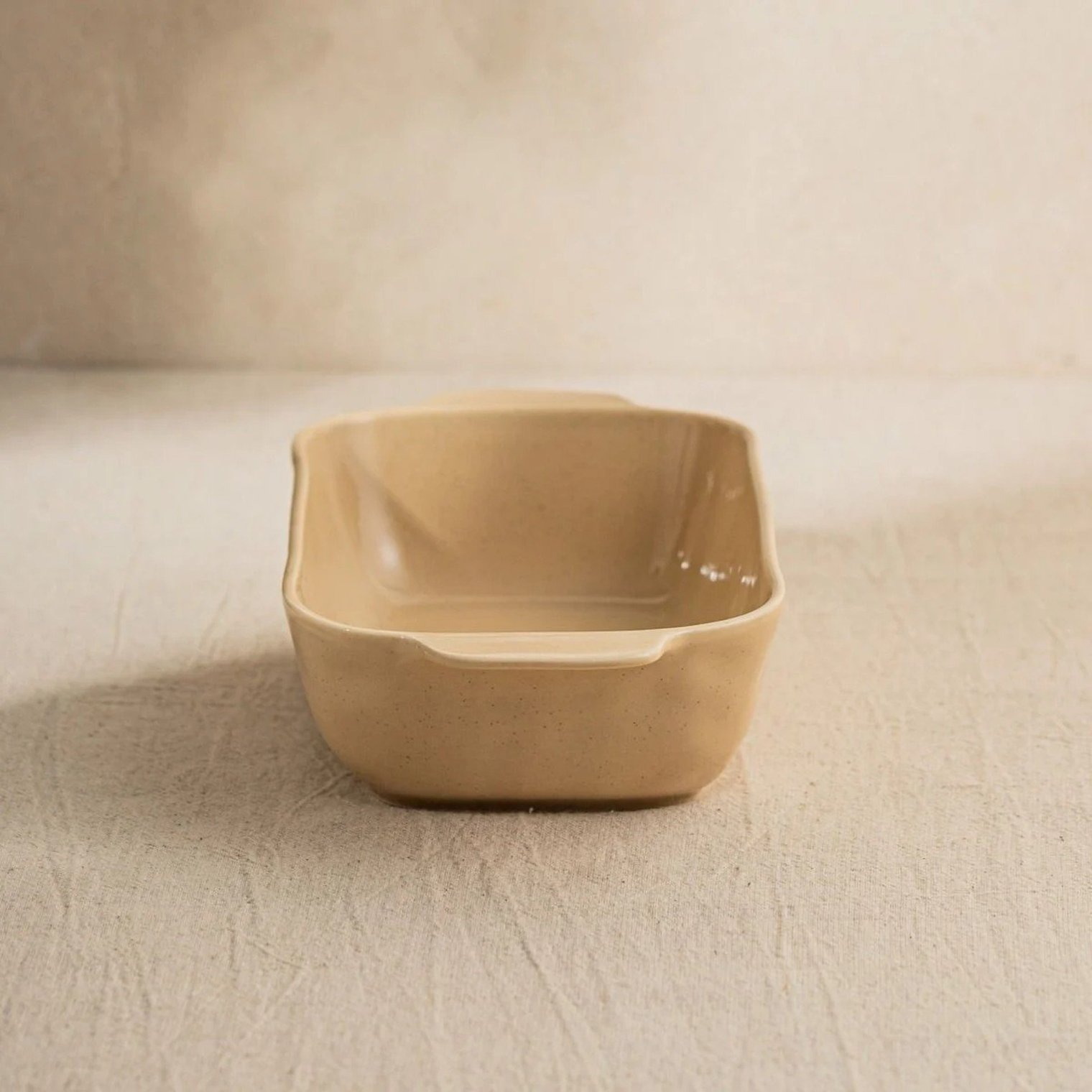 Бежева форма для запікання ISERNIA розміром 24x14 см виготовлена із фарфору. Матеріал міцний та підходить для використання в духовці при температурі до 250 °C. Форма придатна для використання в мікрохвильовій печі та посудомийній машині.