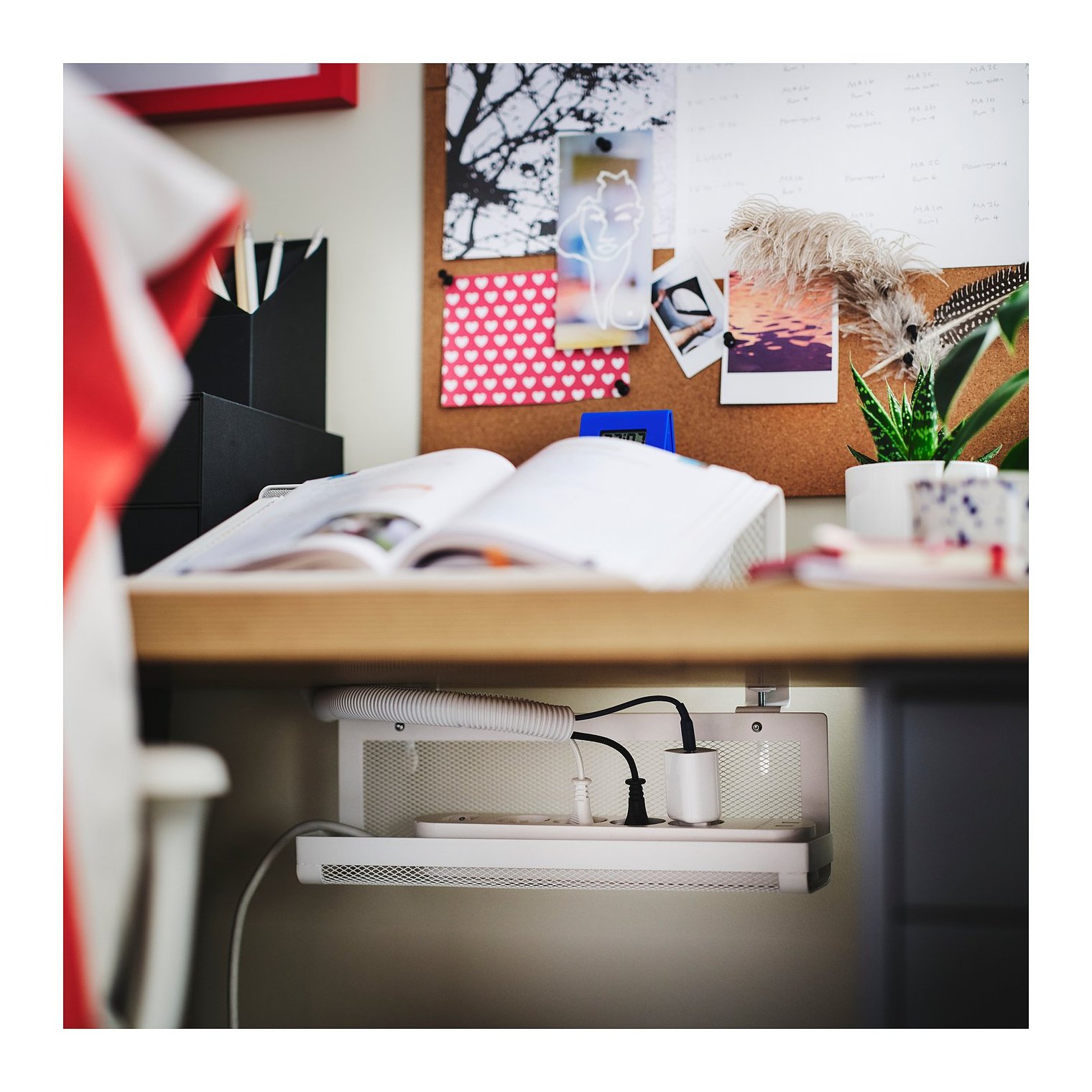 Полицю для кабелю можна повісити прямо на стіл, не пошкоджуючи поверхню, і при необхідності легко перемістити.