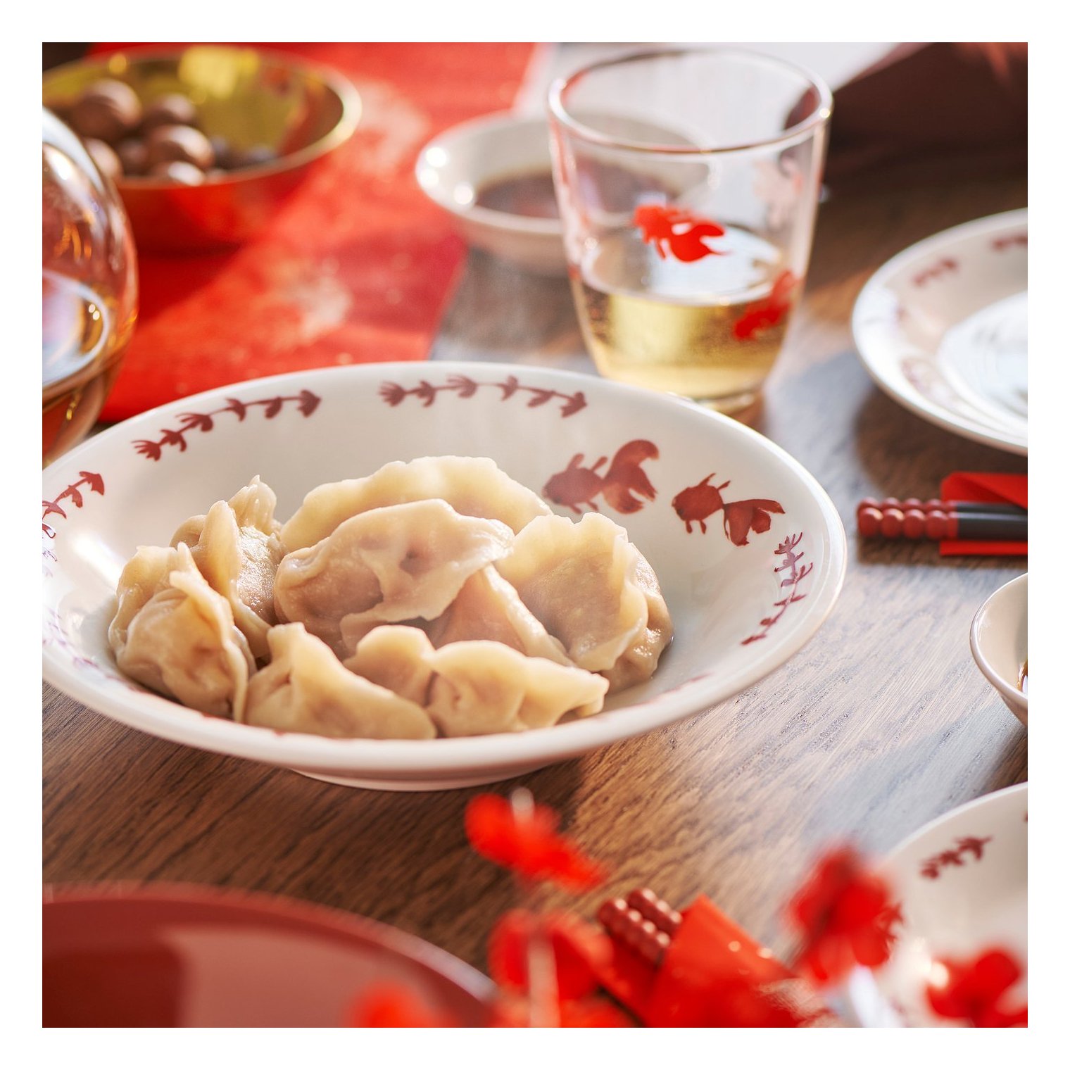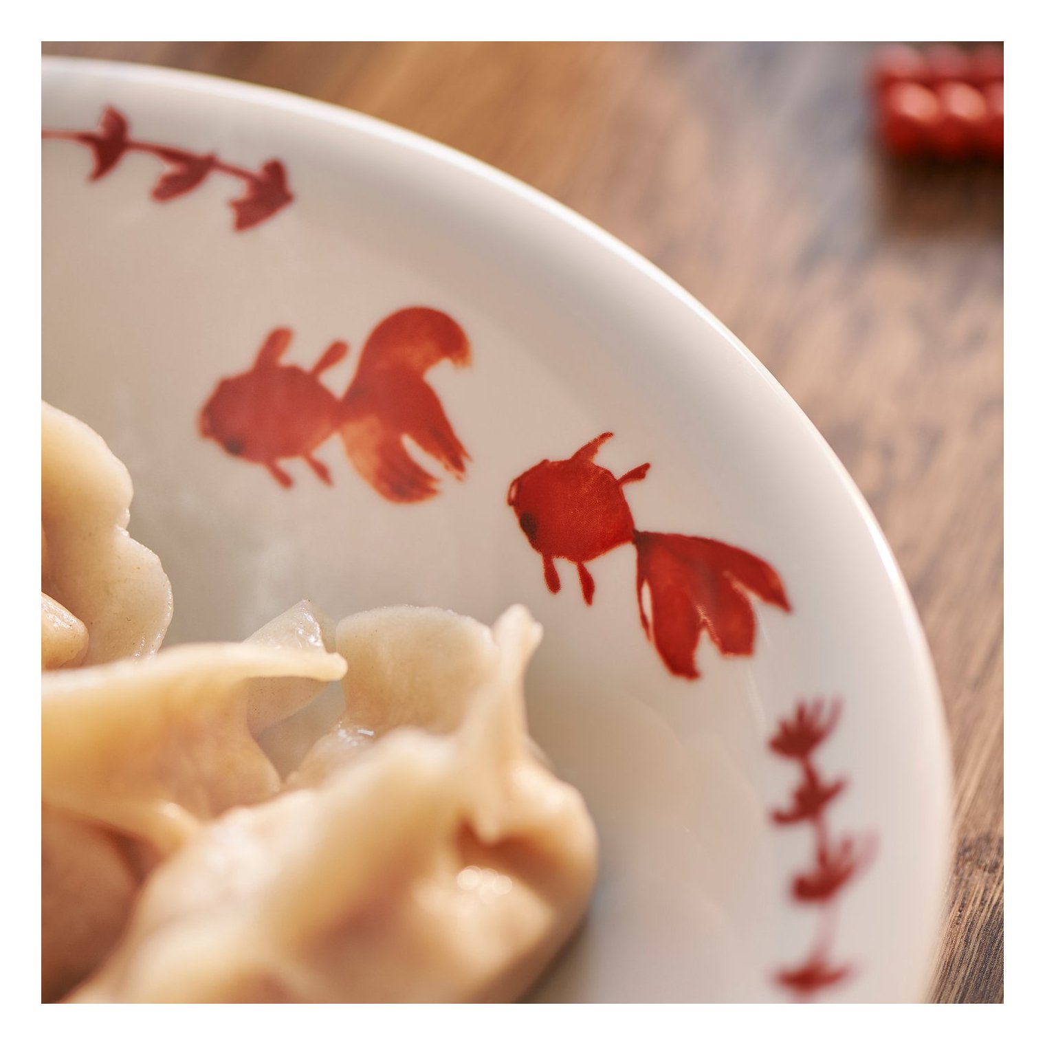 Цей грайливий декоративний мотив натхненний традиційним китайським мистецтвом, де золоті рибки символізують багатство та процвітання. Ідеальний додаток до вашого святкового столу!