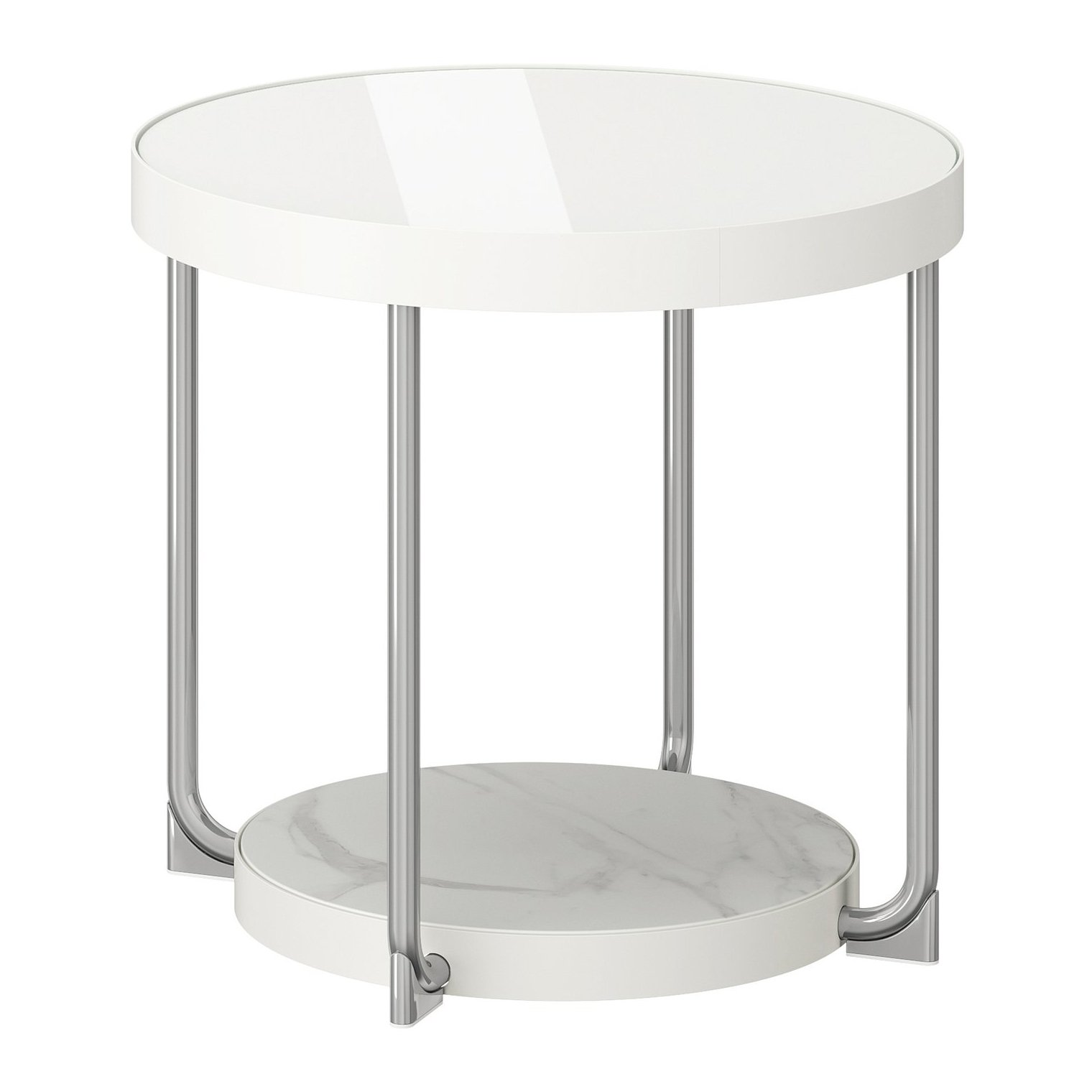 Поєднання стильного дизайну та міцних матеріалів, таких як скляна стільниця, хромовані ніжки та полиця з імітацією мармуру, надає йому позачасового характеру.