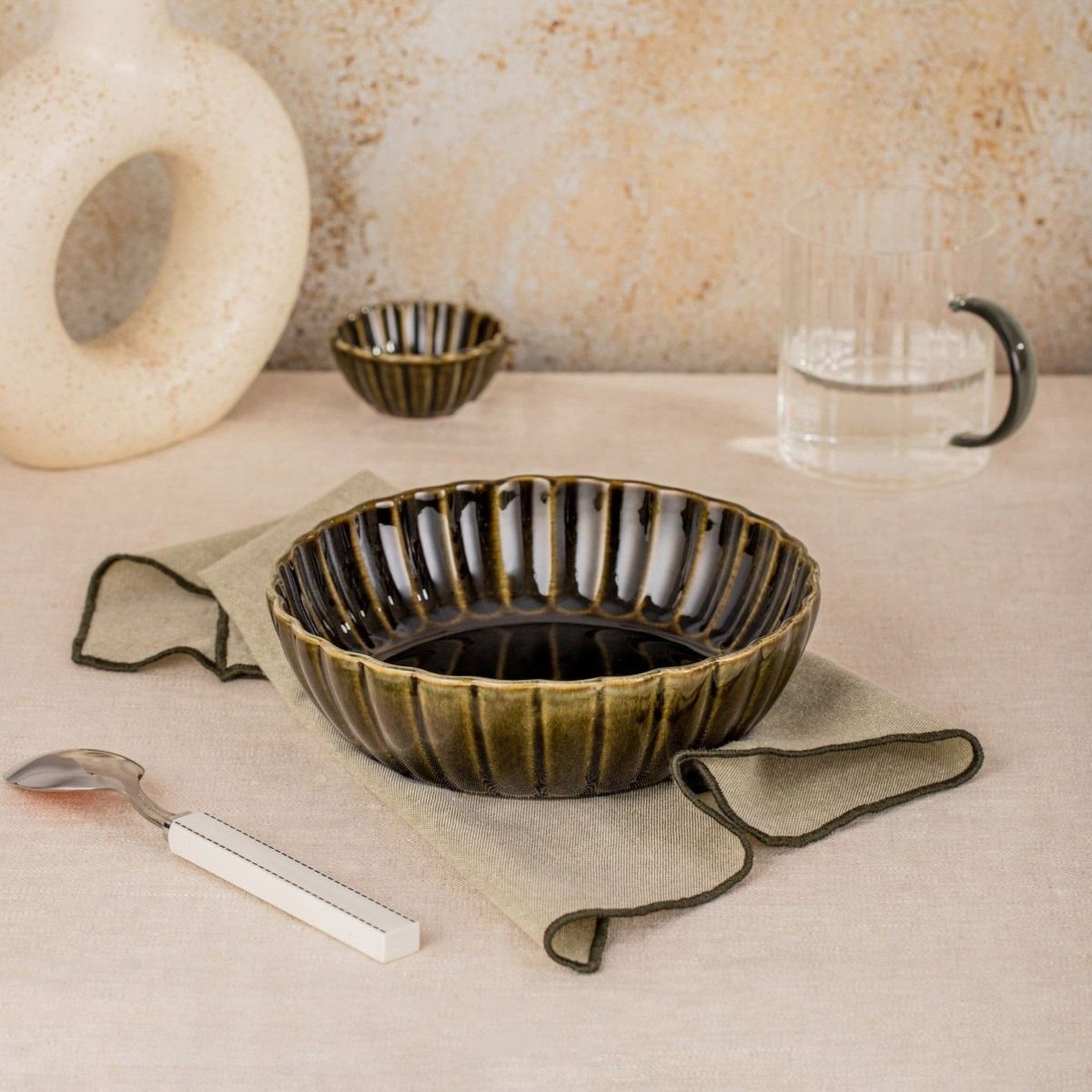 Тарілка глибока 19 см із темно-зеленого керамограніту.