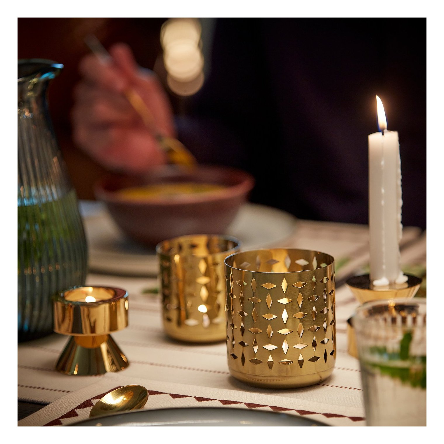Світло від чайної свічки проникає крізь отвори у свічнику, створюючи дивовижні тіні на стінах кімнати.