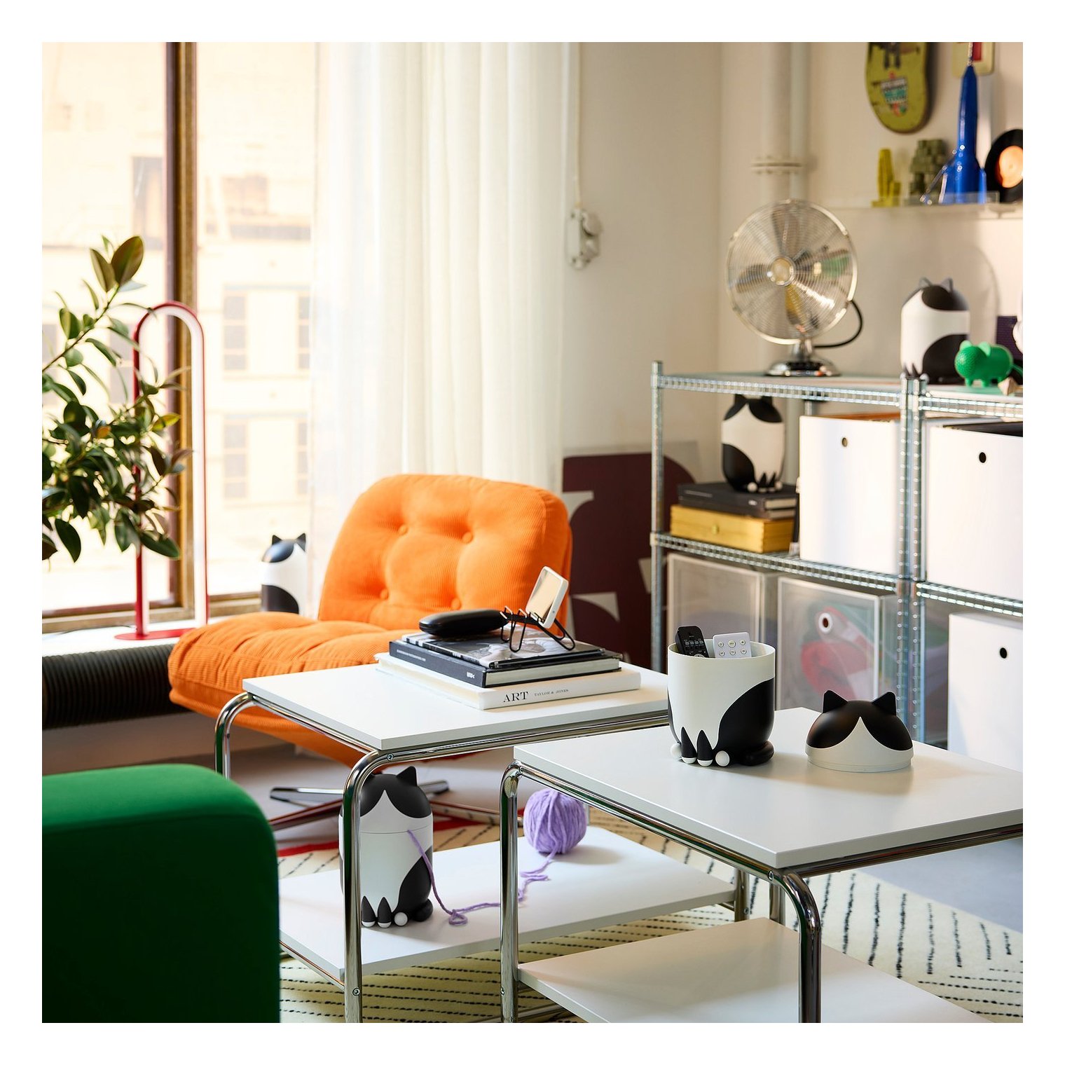 Ця оригінальна кішка – практичний контейнер, який можна легко перемістити куди завгодно.
