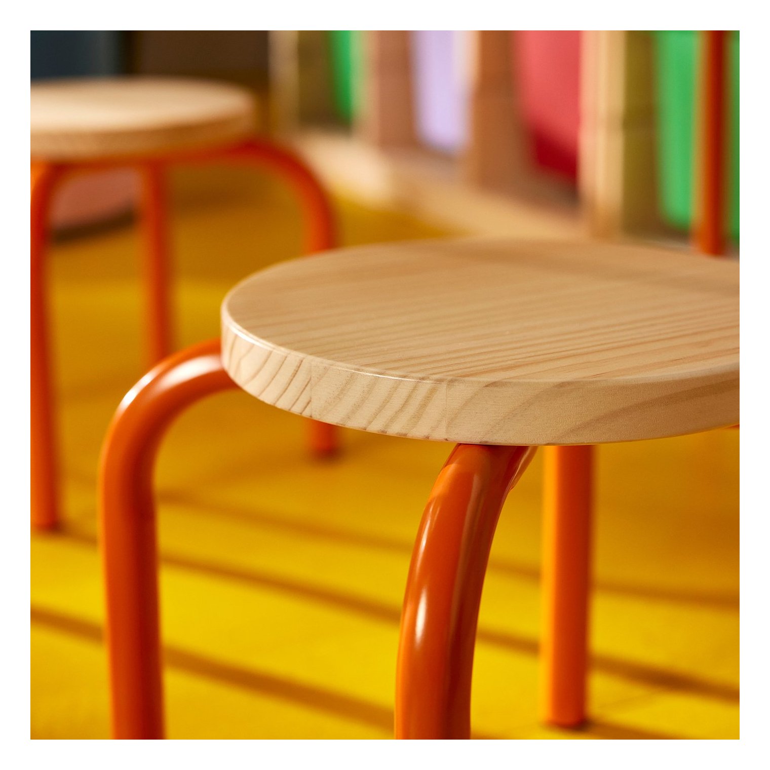 Дерев'яне сидіння та вигнуті помаранчеві ніжки забезпечують міцність та дозволяють штабелювати стільці. Універсальна конструкція, що підійде практично для будь-якого місця.