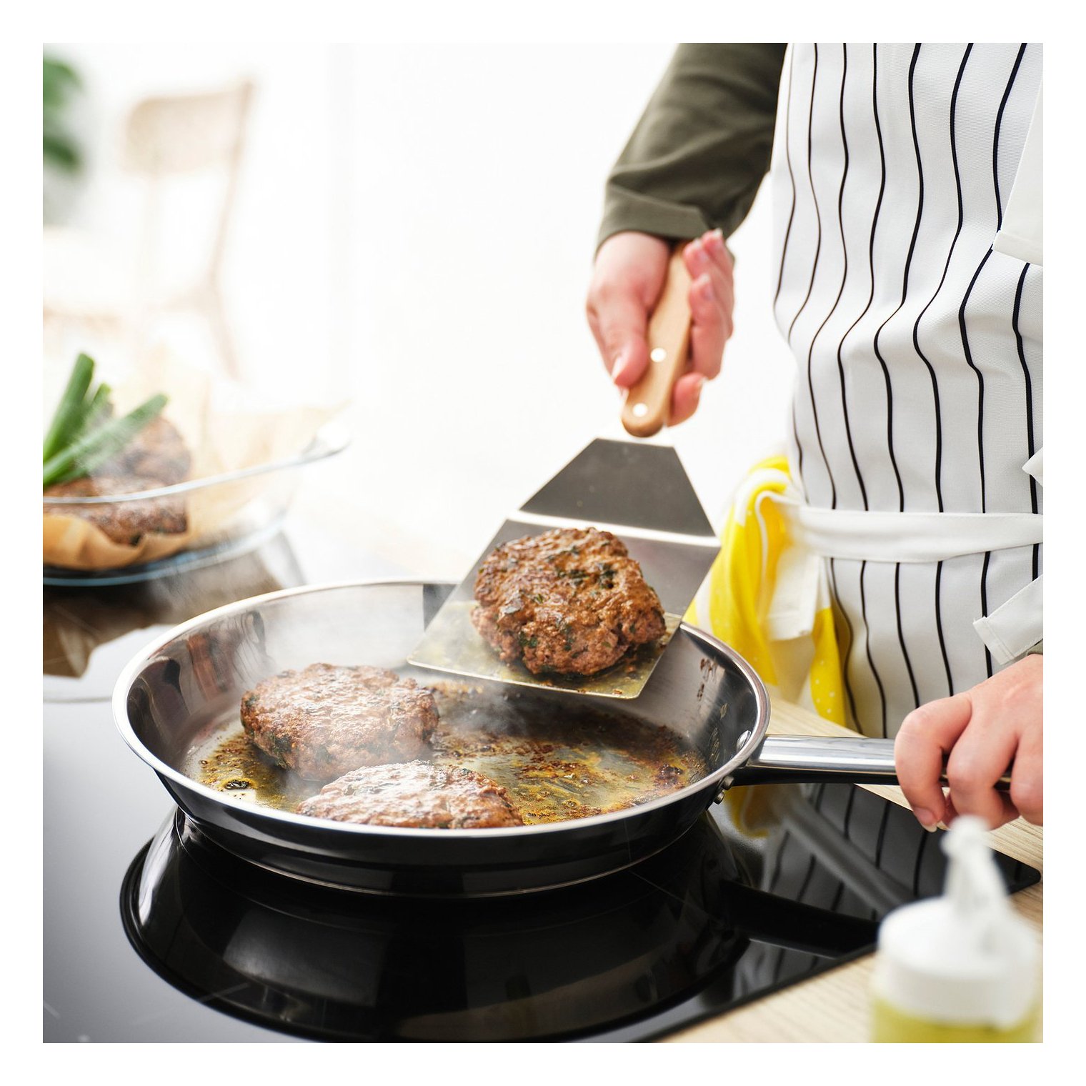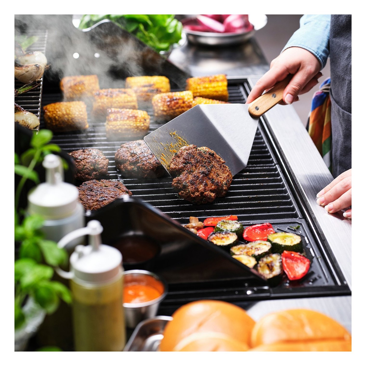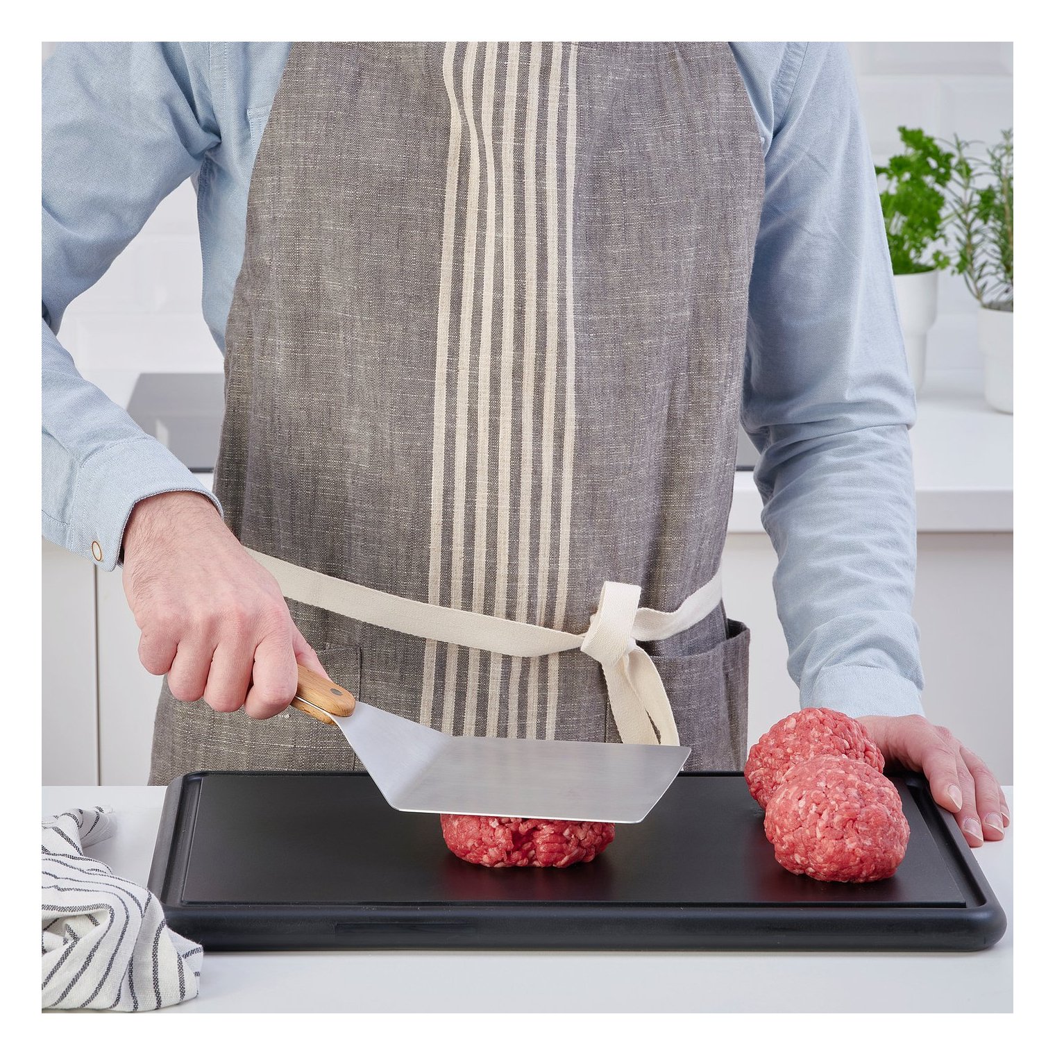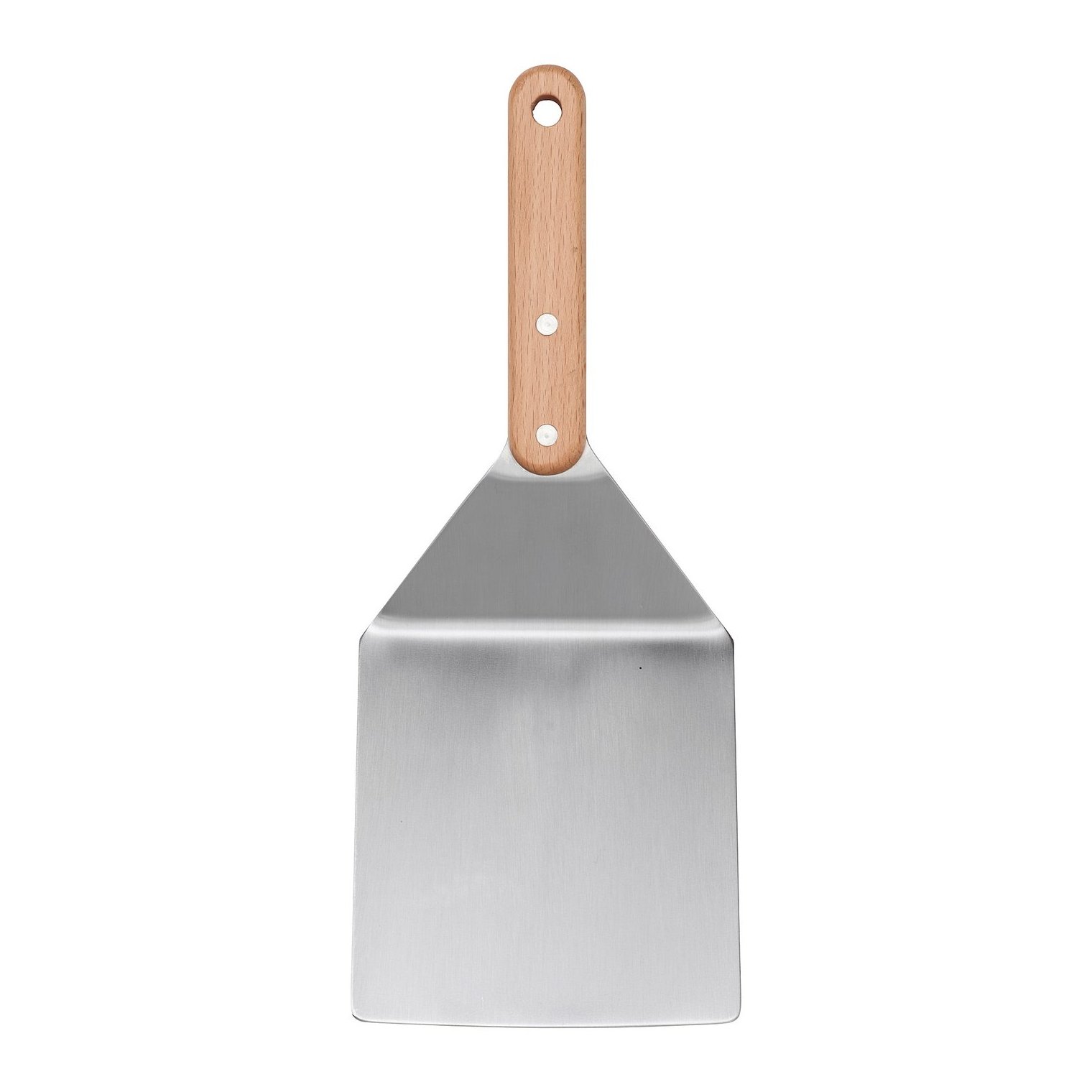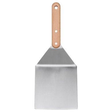 Дуже широка та коротка лопатка дозволяє легко перевертати бургери на грилі чи сковороді.