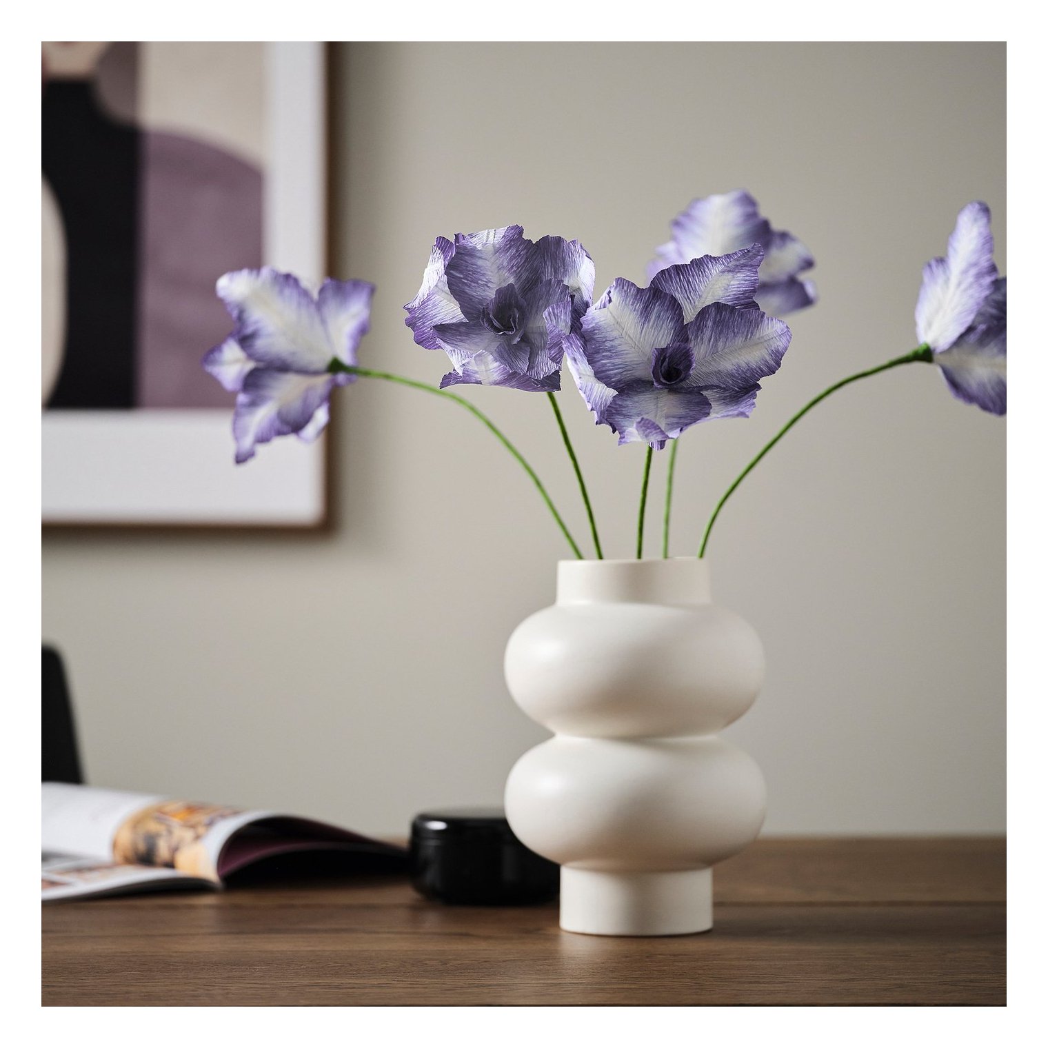 Паперові квіти з тонкою деталізацією привнесуть у ваш інтер'єр чари яскравих кольорів, але при цьому вони не вимагають поливу і не в'януть.