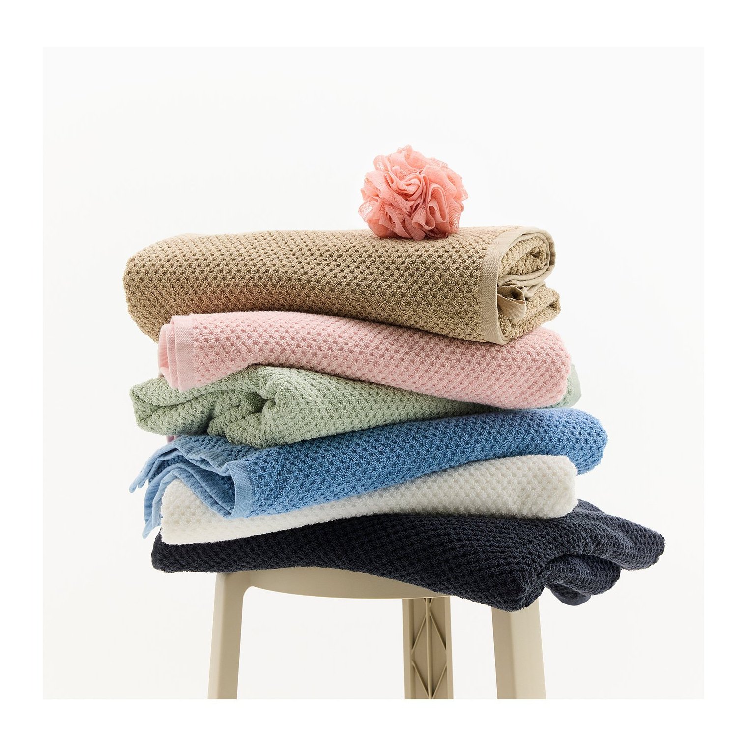 Махровий рушник середньої товщини, м'який і добре вбирає вологу (щільність 500 г/м²).