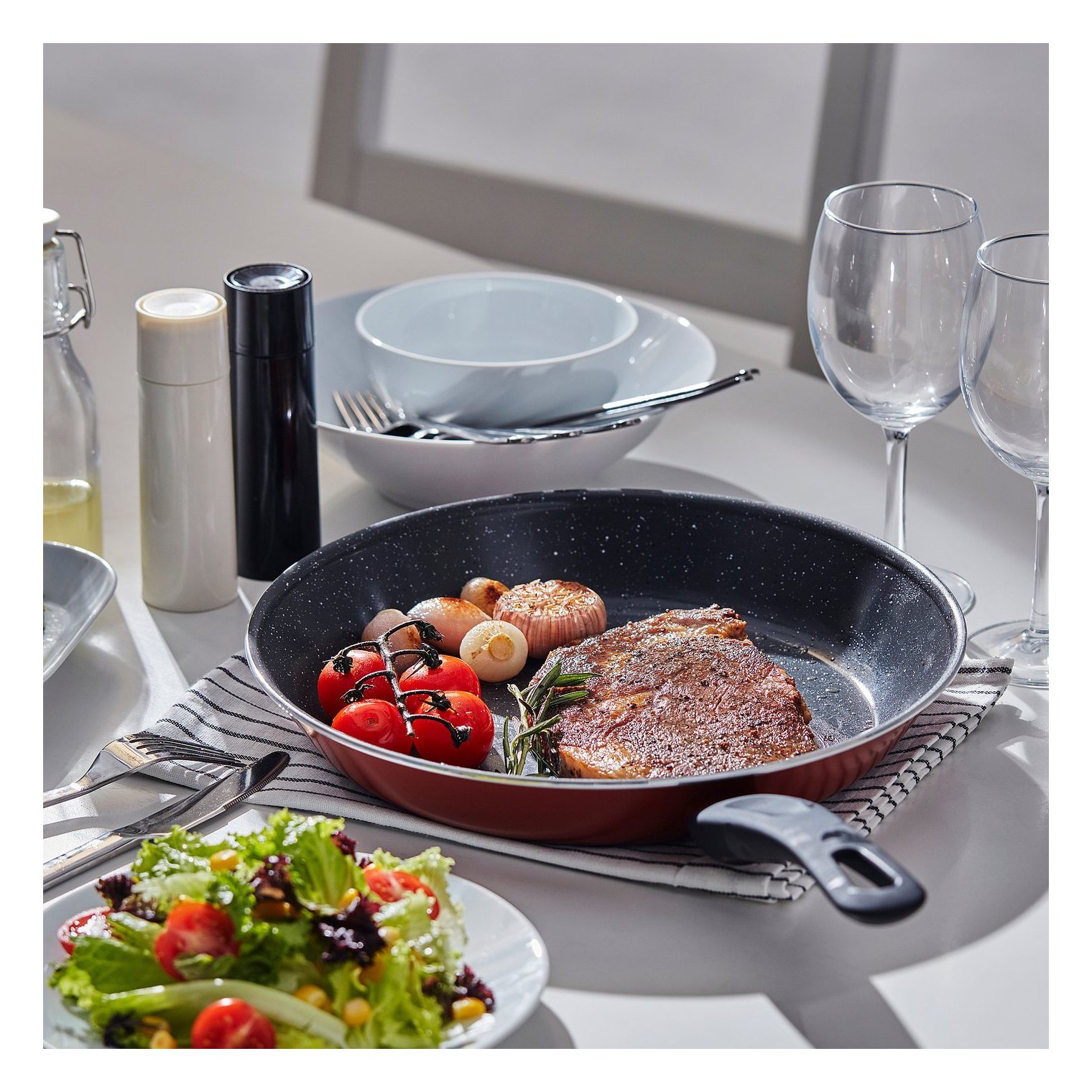 Алюміній рівномірно та ефективно розподіляє тепло, що дозволяє легко регулювати температуру та запобігати пригоранню та прилипанню їжі.
