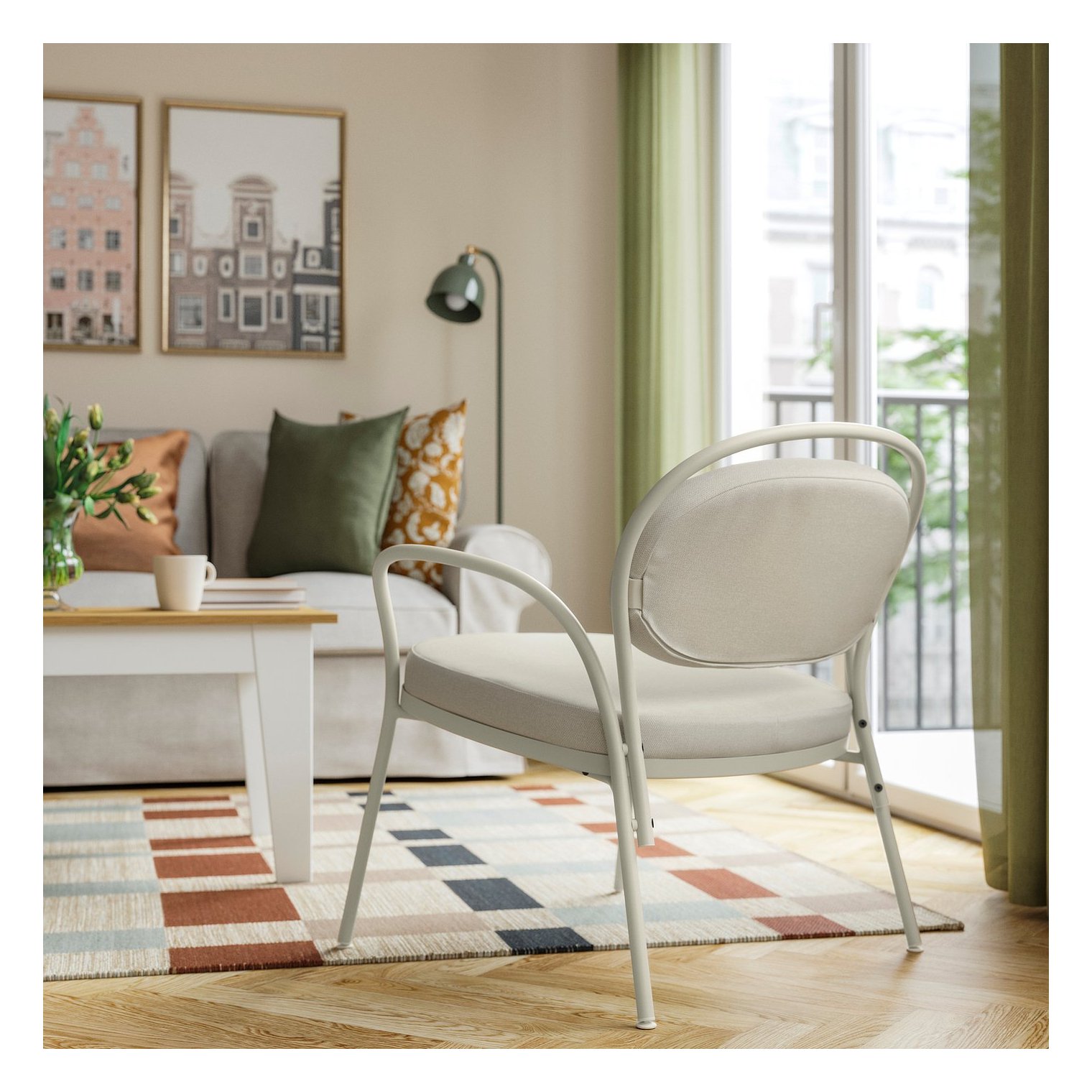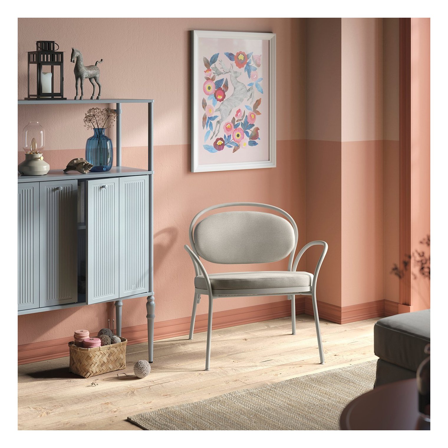 Крісло ISMANTORP із закругленим металевим каркасом та елегантним силуетом, натхненним традиційними стільцями із гнутої деревини, вражає своїм дизайном.