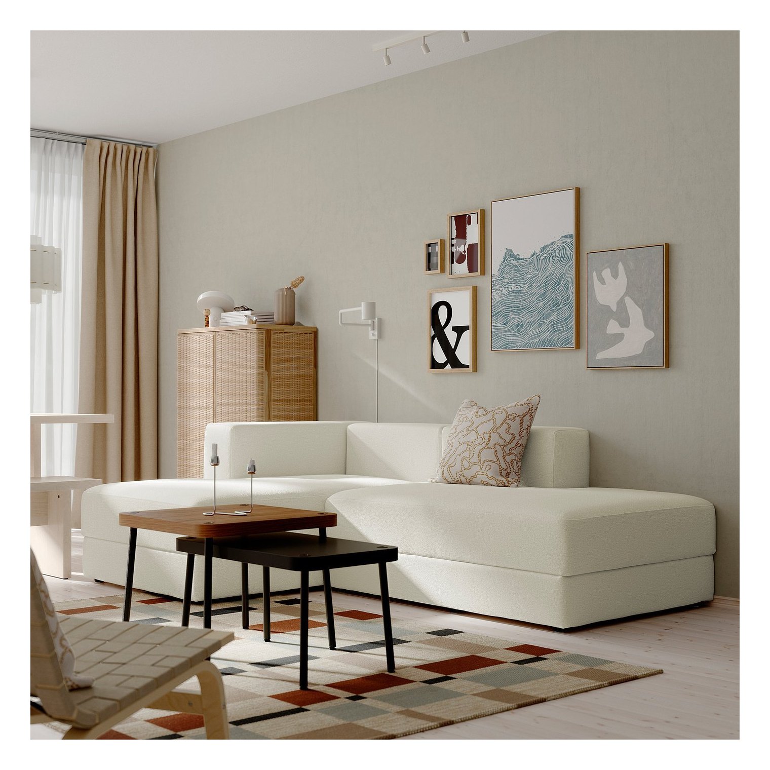 Модульний диван JÄTTEBO відрізняється простою формою та чистими лініями, він м'який, зручний та практичний, з місцем для зберігання під сидінням.