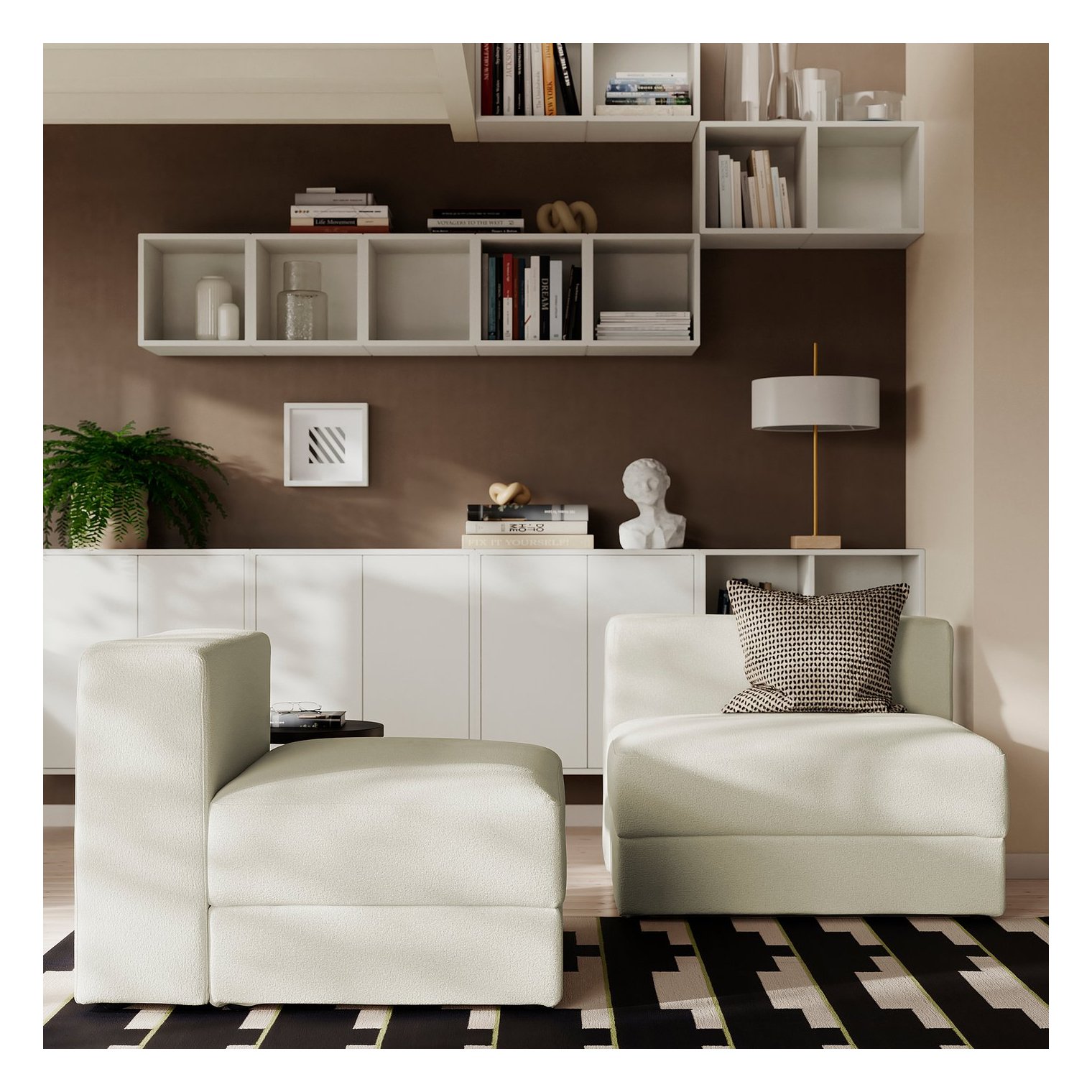 Модулі однаково добре виглядають з усіх боків, тому диван можна поставити вздовж стіни, так і посередині кімнати.
