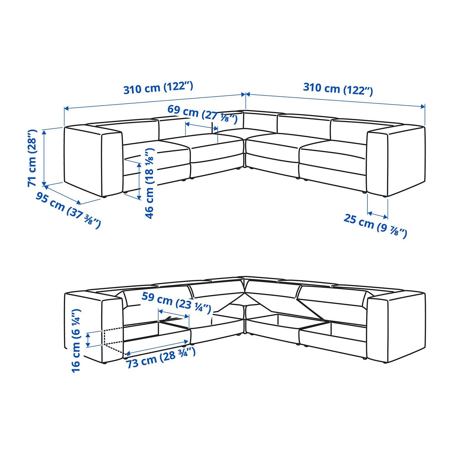 Модульний диван JÄTTEBO відрізняється простою формою та чистими лініями, він м'який, зручний та практичний, з місцем для зберігання під сидінням.