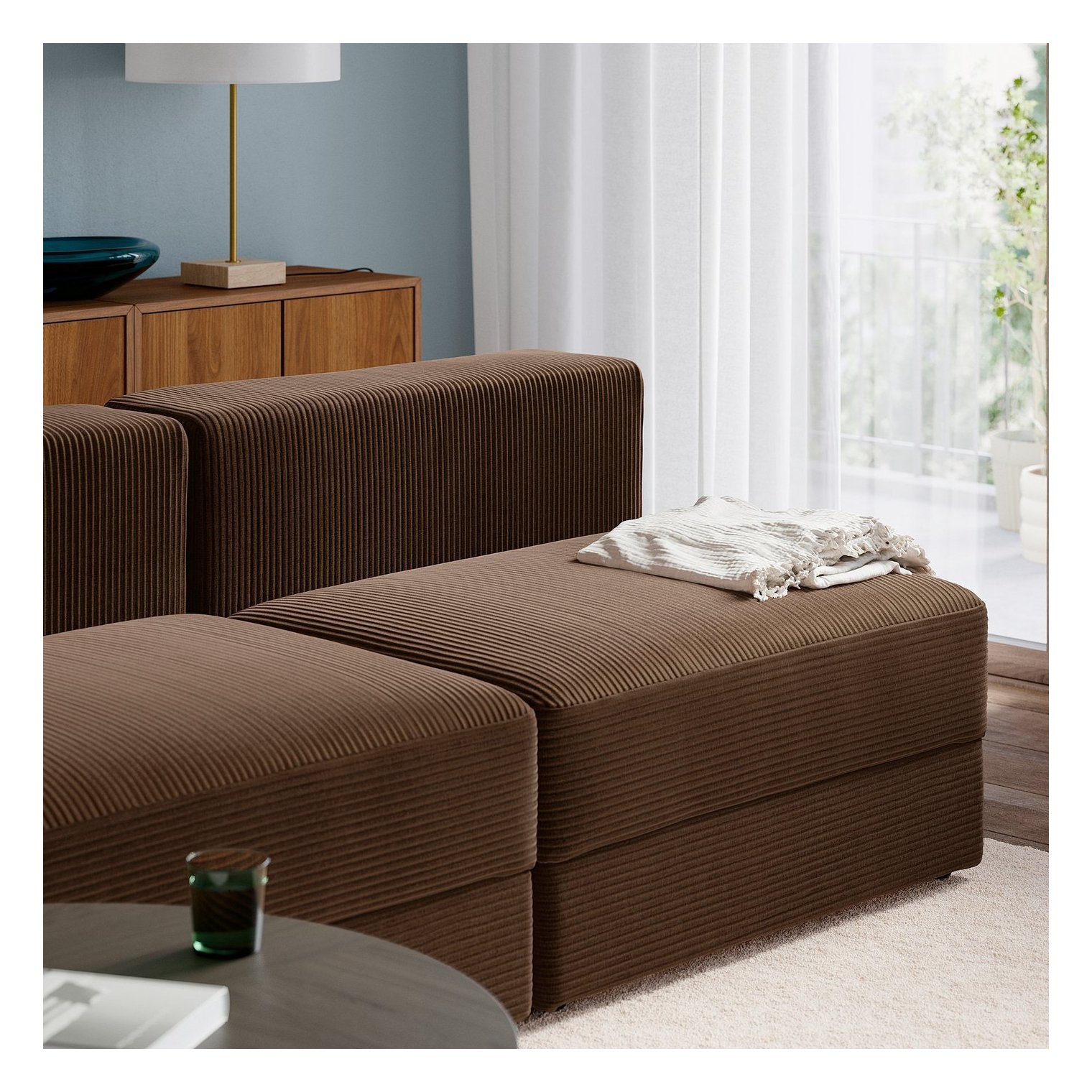 Модульний диван JÄTTEBO відрізняється простою формою та чистими лініями, він м'який, зручний та практичний, з відсіком для зберігання під сидінням.