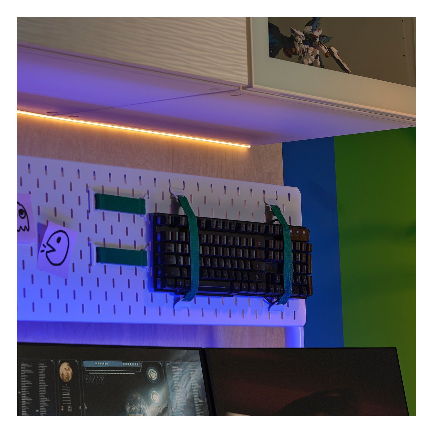 Легко встановлюється – просто зніміть папір із клейкою стрічкою та приклейте світлову стрічку в потрібному місці.