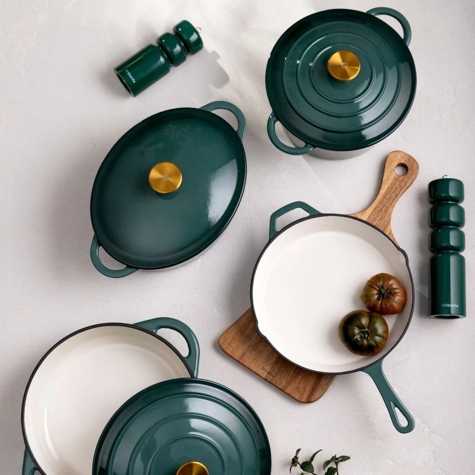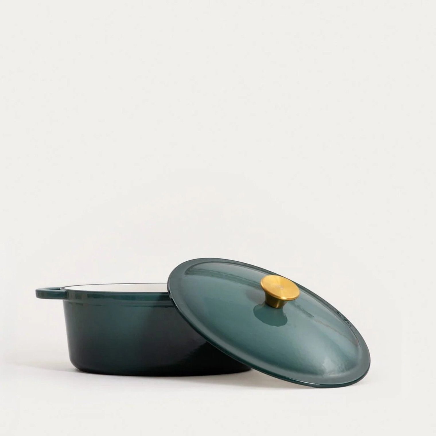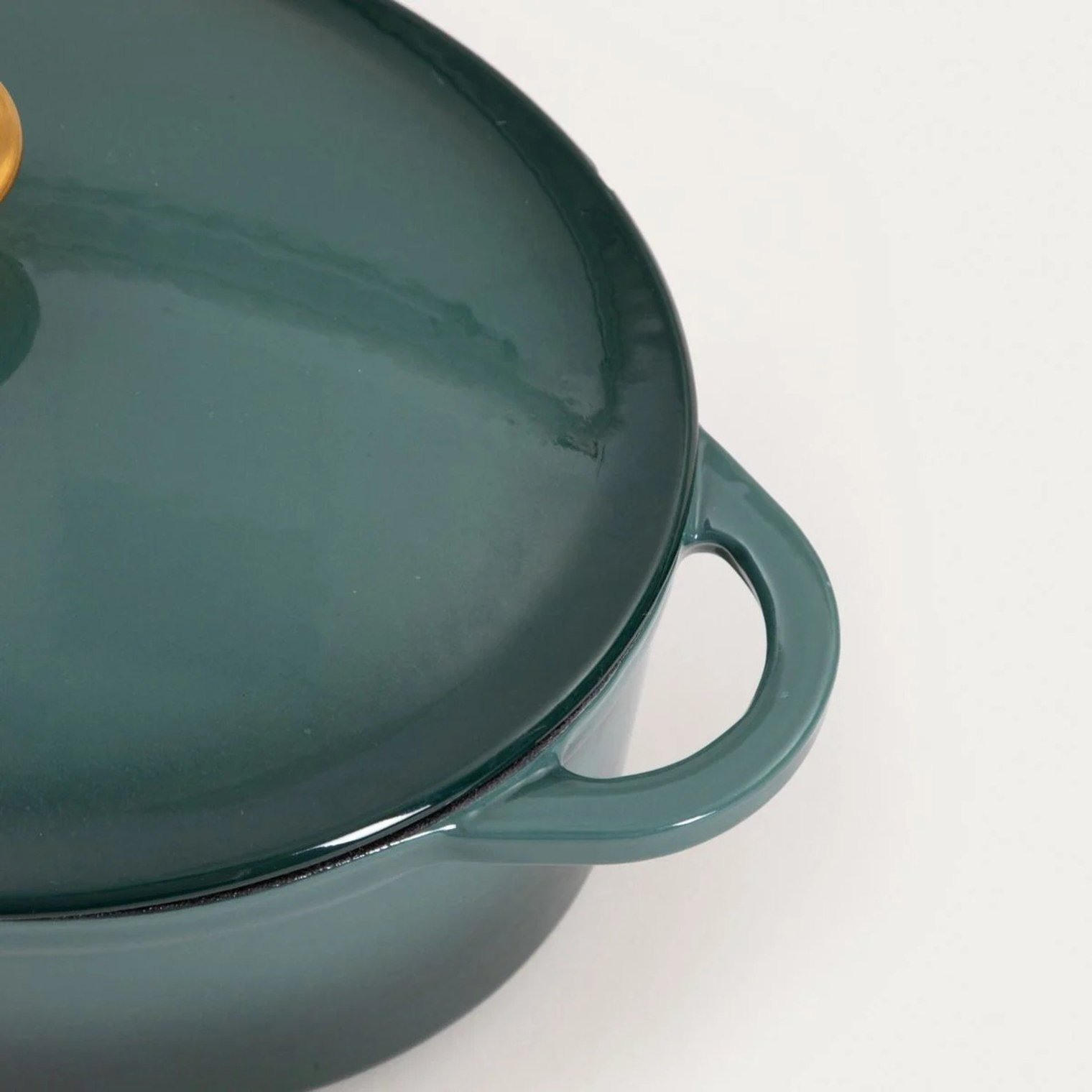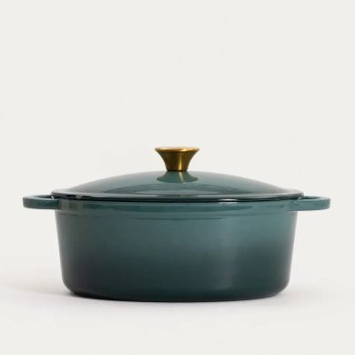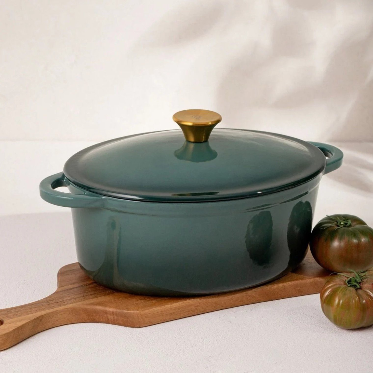 Овальна зелена каструля ANDREAS об'ємом 4,5 л з градієнтним переходом кольору виготовлена із міцного високоякісного чавуну.