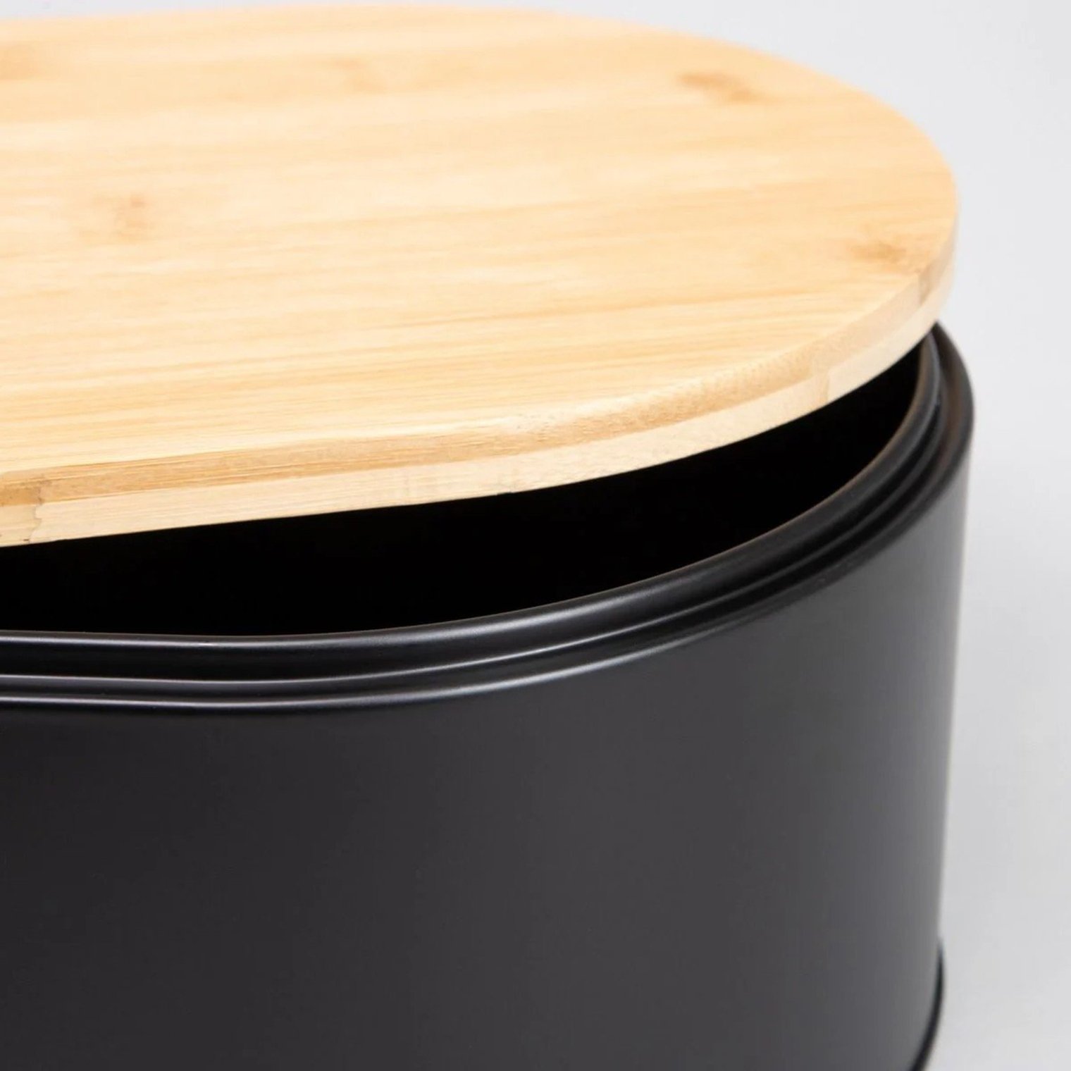 Корпус хлібниці на 80% складається з металу, що забезпечує довговічність та легкість очищення. Кришка з натурального бамбука (20%) також може використовуватися як обробна дошка - практичне рішення для повсякденного використання.