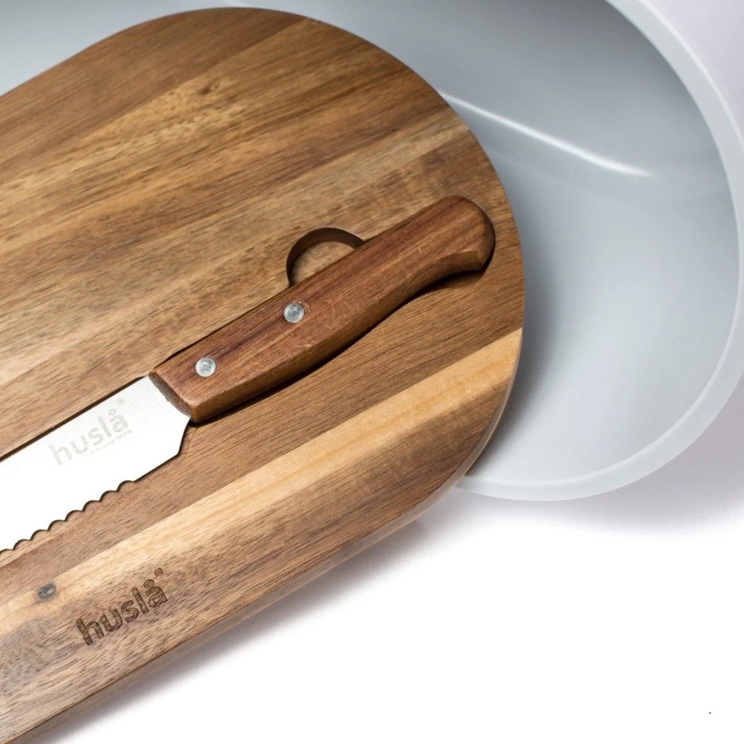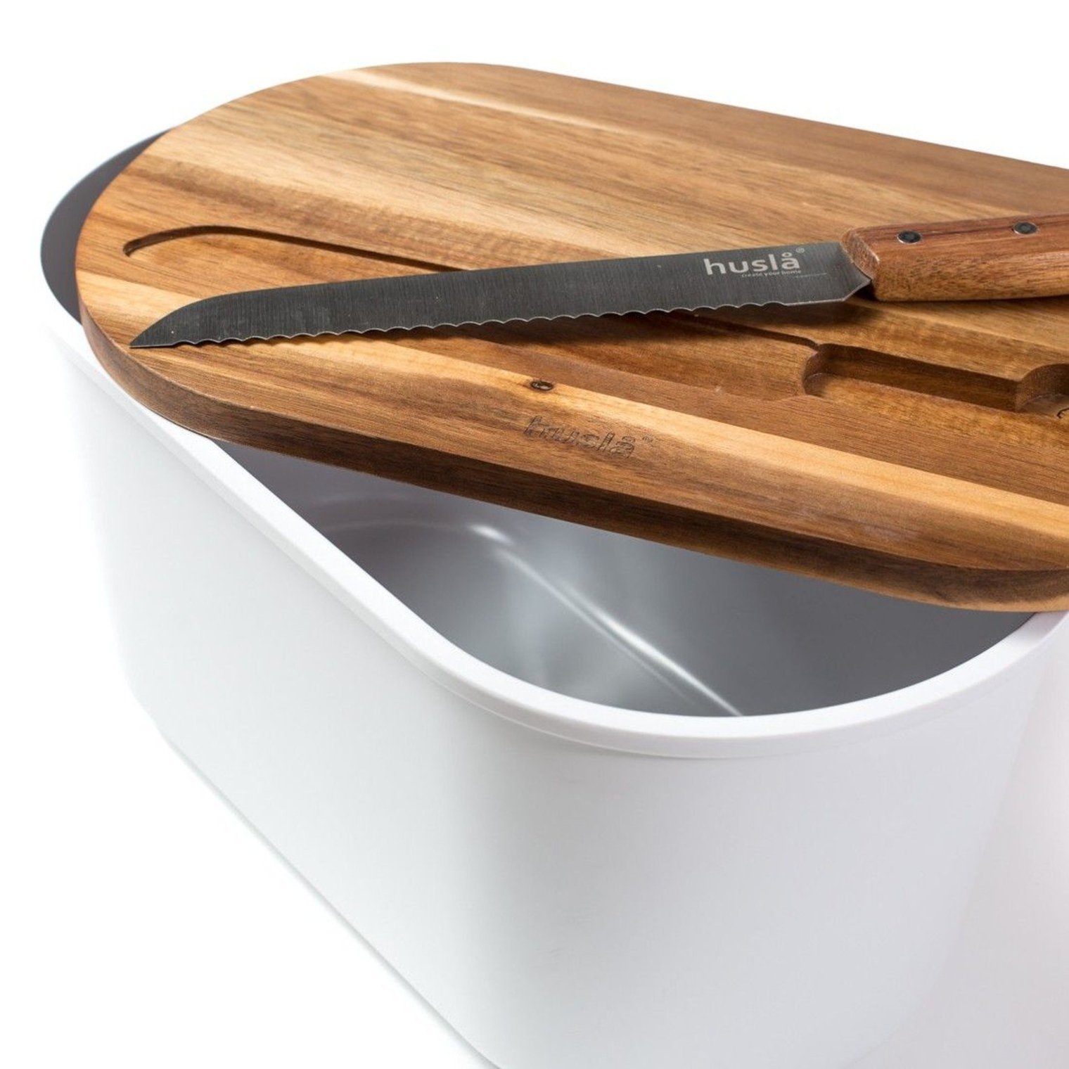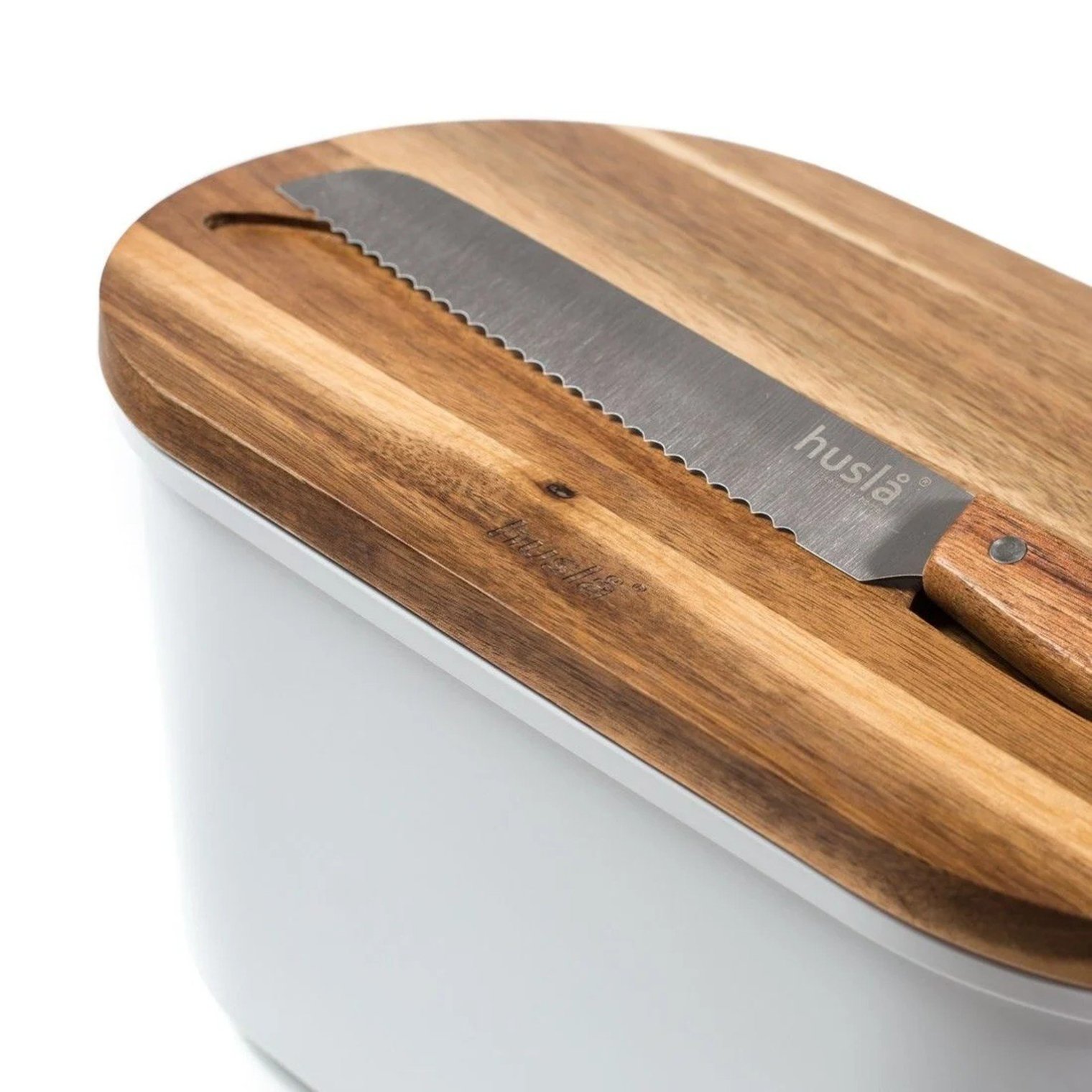 Хлібниця ACACIA з обробною дошкою та ножем, біла, HUSLA.