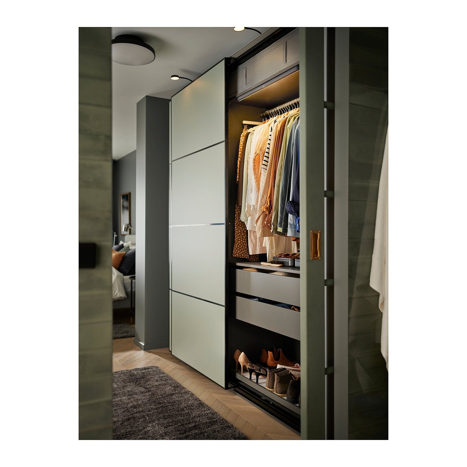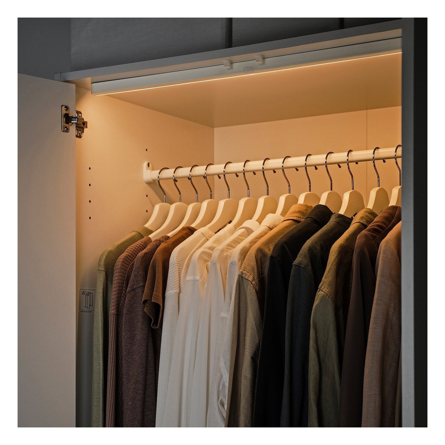 Датчик реагує на рух у межах 1,5 м і автоматично вимикає світло через 60 секунд, якщо хтось забуде закрити дверцята або ящик.