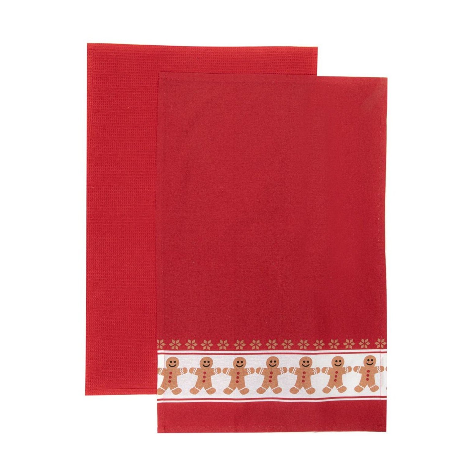 Кухонні рушники BISCOTTO – чарівний кухонний текстиль зі святковим настроєм. Обидва вироби виконані у насиченому червоному кольорі. Виворітний бік прикрашений красивим принтом у вигляді чоловічка-печінки. Розмір кожного рушника 50 х 70 см.