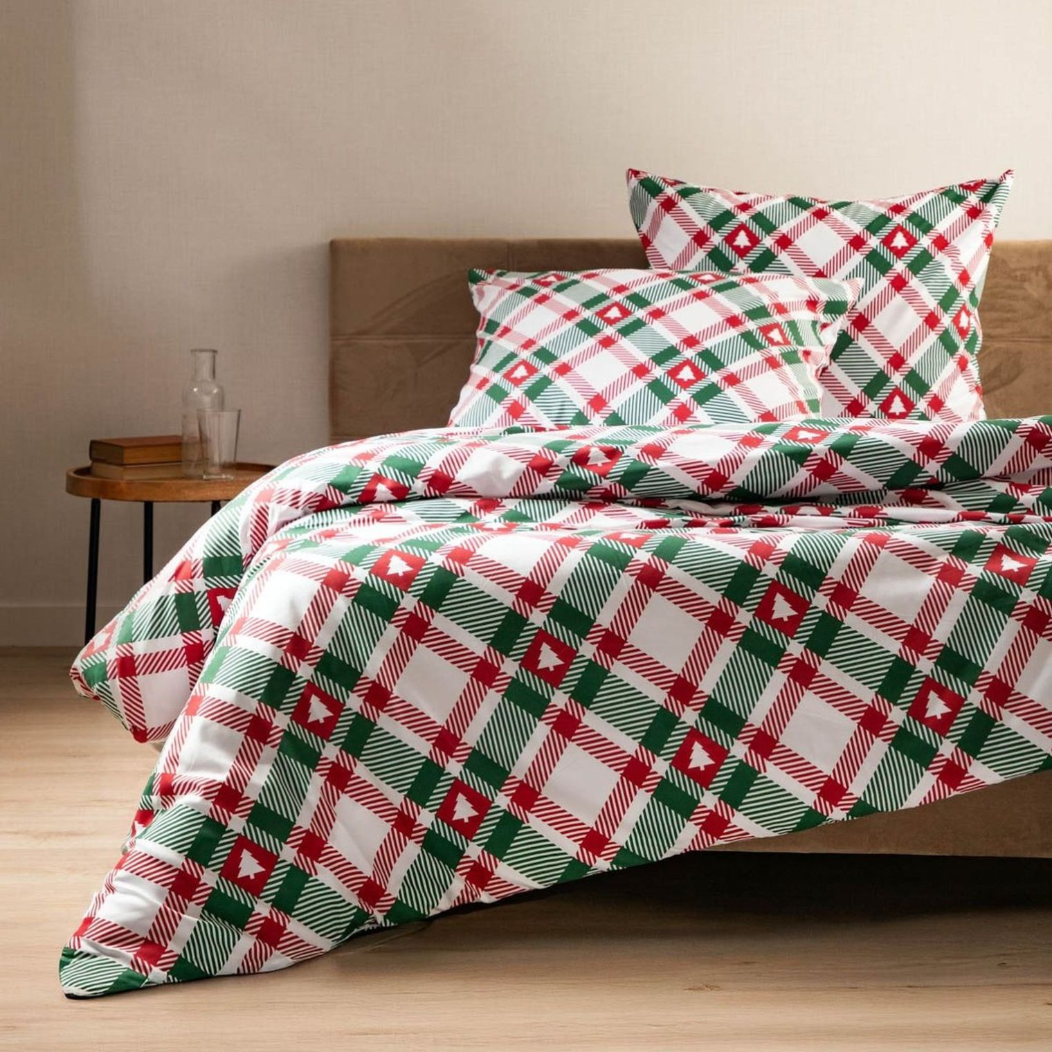 Клітчаста постільна білизна ADYGA має святкову чарівність, пробуджуючи спогади про найпрекрасніші моменти в будинку, але при цьому вона універсальна. Це означає, що його можна використовувати не лише у різдвяний сезон, а й у зимовий декор. Класичні кольори створюють чіткий візерунок, а витончені ялинки на червоному тлі – додатковий декоративний мотив.
