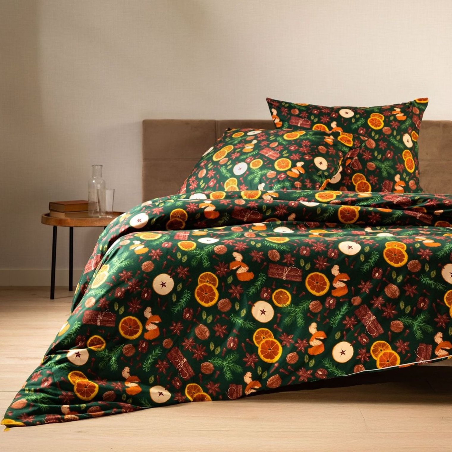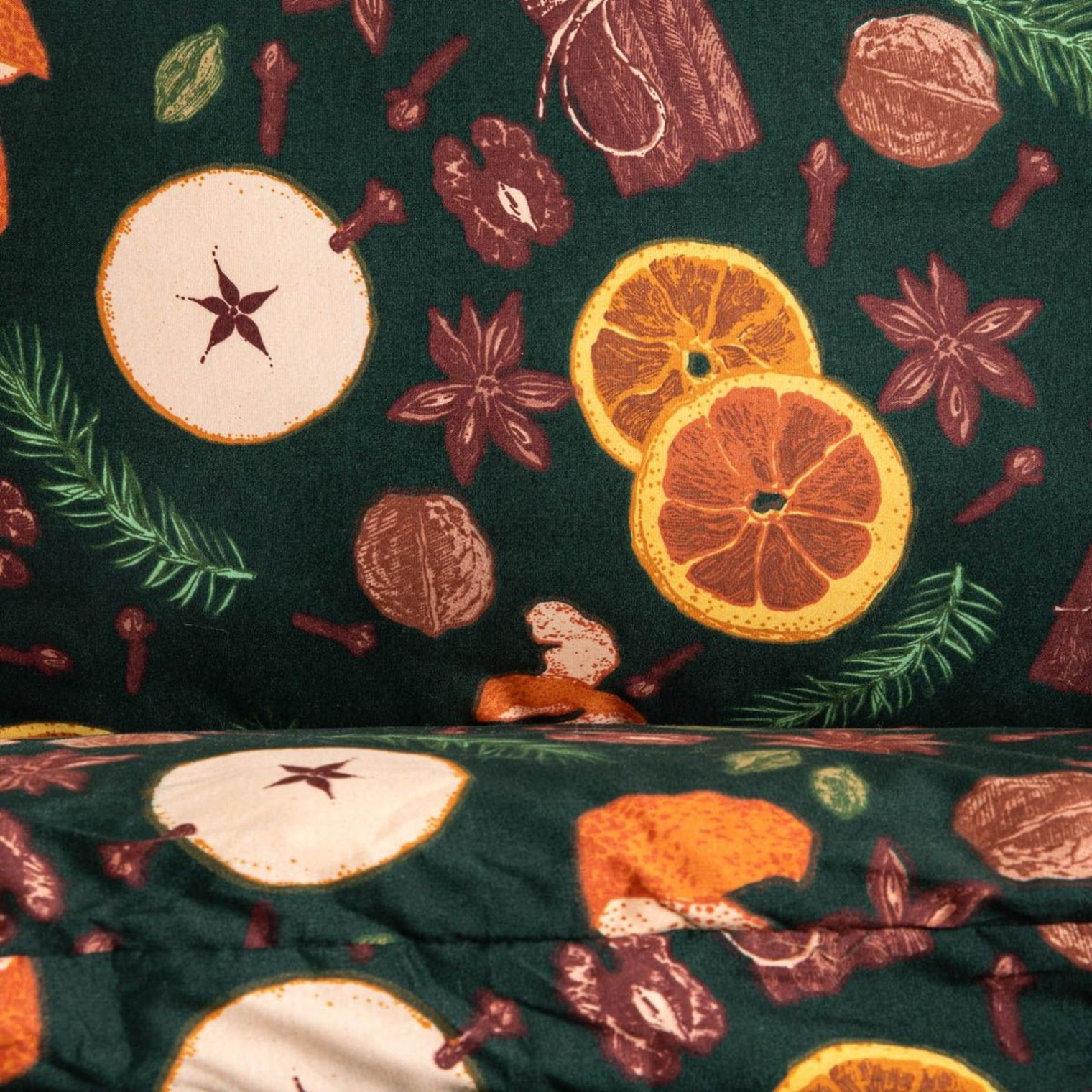 Гвоздика, сушені апельсини, ваніль, палички кориці та аніс - декоративний мотив комплекту постільної білизни ARANCIA пробуджує спогади і пробуджує безтурботні миті, коли кухня була наповнена радісними розмовами, а весь будинок пах Різдвом. Цей комплект перетворить вашу кімнату або спальню на чарівне місце, де нахлинуть найтепліші спогади. Теплий і приємний на дотик, він огорне вас ніжністю і забезпечить спокійний і здоровий сон.