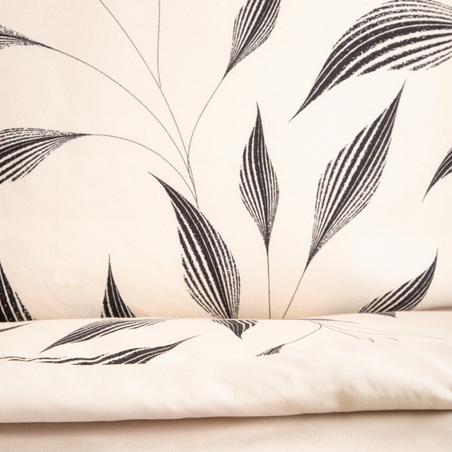 Цей комплект постільної білизни із чорним листям на бежевому фоні виглядає дуже елегантно. Він додасть вишуканий декоративний акцент у вашу спальню. М'який матеріал забезпечить комфортний та приємний нічний сон.