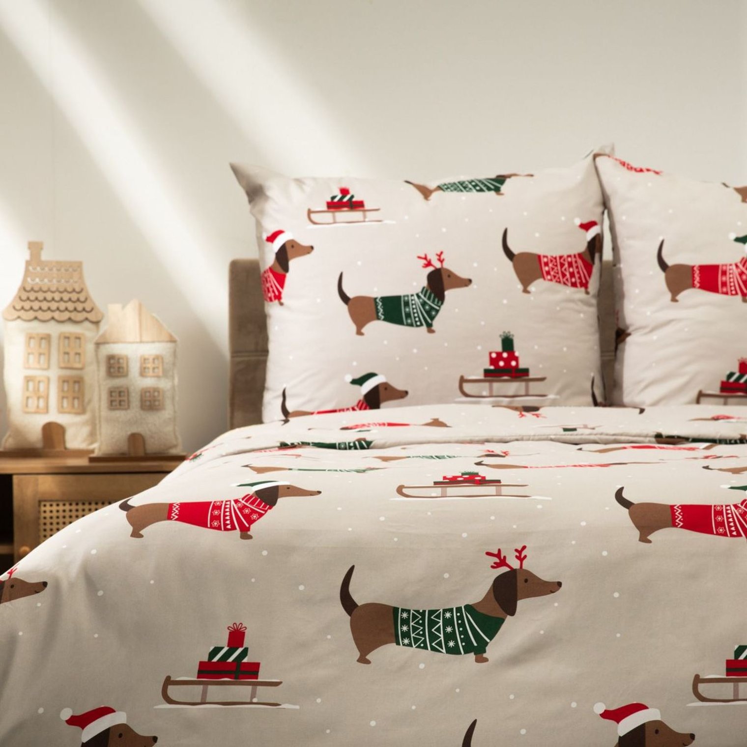 Цей комплект постільної білизни з мікрофібри із чарівними таксами та різдвяними ялинками підкорить серце будь-якого любителя тварин. Цей унікальний комплект створить чарівну святкову атмосферу у спальні. Створіть неповторну атмосферу з елегантним комплектом постільної білизни та наволочок GENESIS, який забезпечить комфортний сон та відпочинок. Постільна білизна добре зберігає тепло, забезпечуючи комфорт у холодні ночі, а також відрізняється міцністю та стійкістю до стирання.