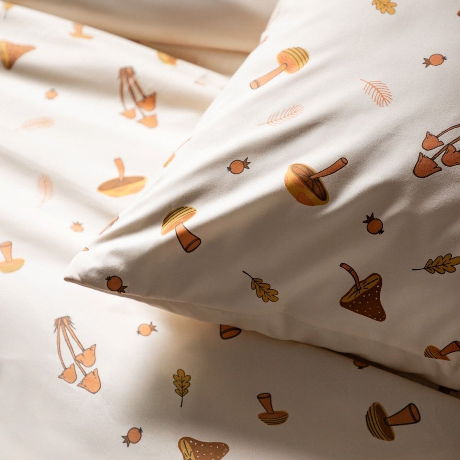 Наша постільна білизна з мікрофібри з принтом у вигляді грибів ідеально підходить для тих, хто цінує поєднання комфортного сну та оригінального дизайну спальні. Якщо вам набридла звичайна постільна білизна і ви шукаєте щось, що пожвавить вашу кімнату, принесе радість та затишок, ця постільна білизна ідеально вам підійде. М'які, винятково приємні на дотик та міцні наволочки SHROOM огорнуть вас під час сну, забезпечуючи комфорт у будь-яку пору року.