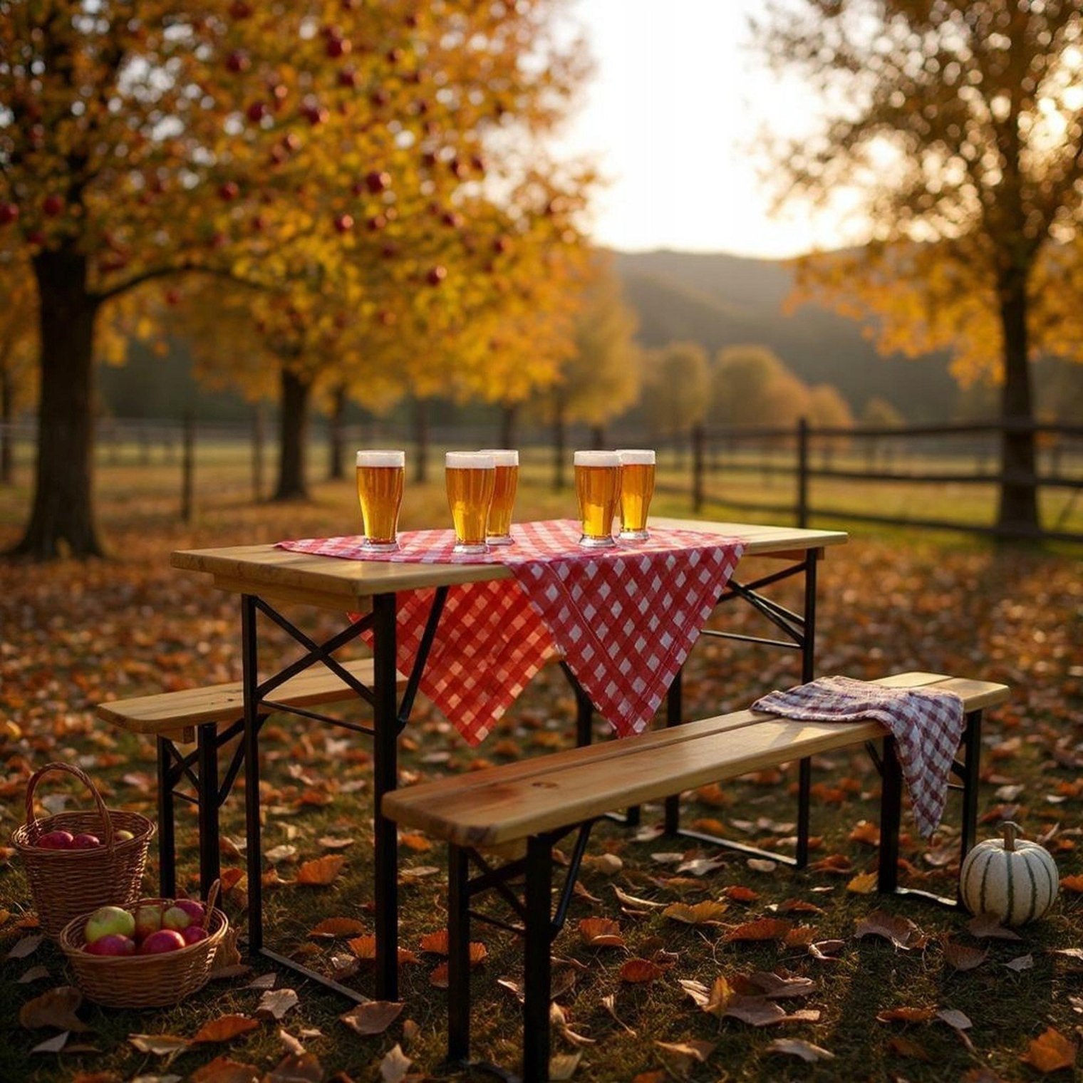 Комплект садових меблів серії Garden Line – ідеальний товар для свят, свят врожаю та подібних заходів на свіжому повітрі. Лавка та стіл виготовлені з просоченої під тиском соснової деревини та покриті лаком. Елементи рами виготовлені із сталі із порошковим покриттям. Крім того, лави та стіл дуже легко складаються, що значно полегшує їх зберігання.